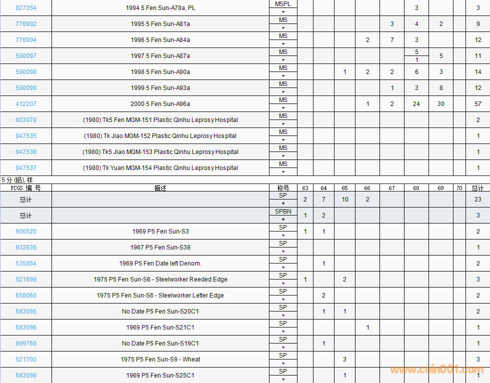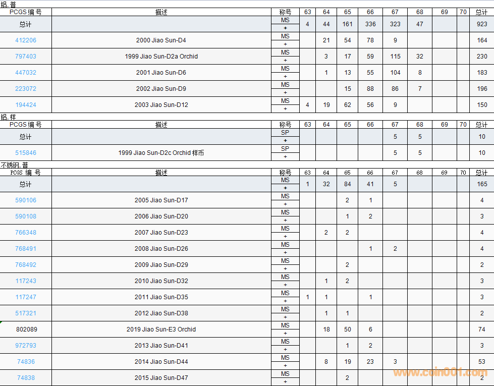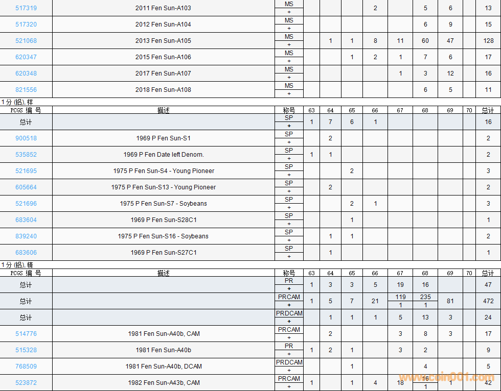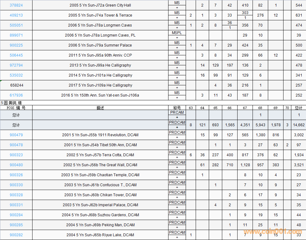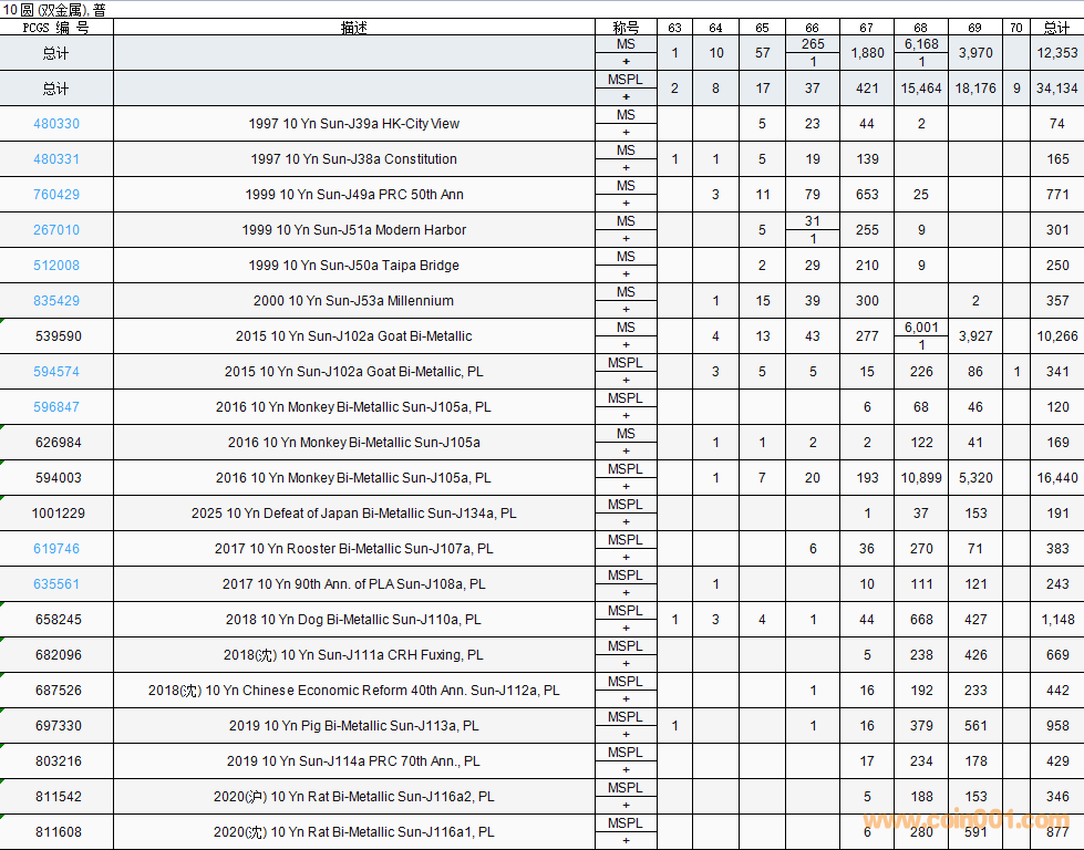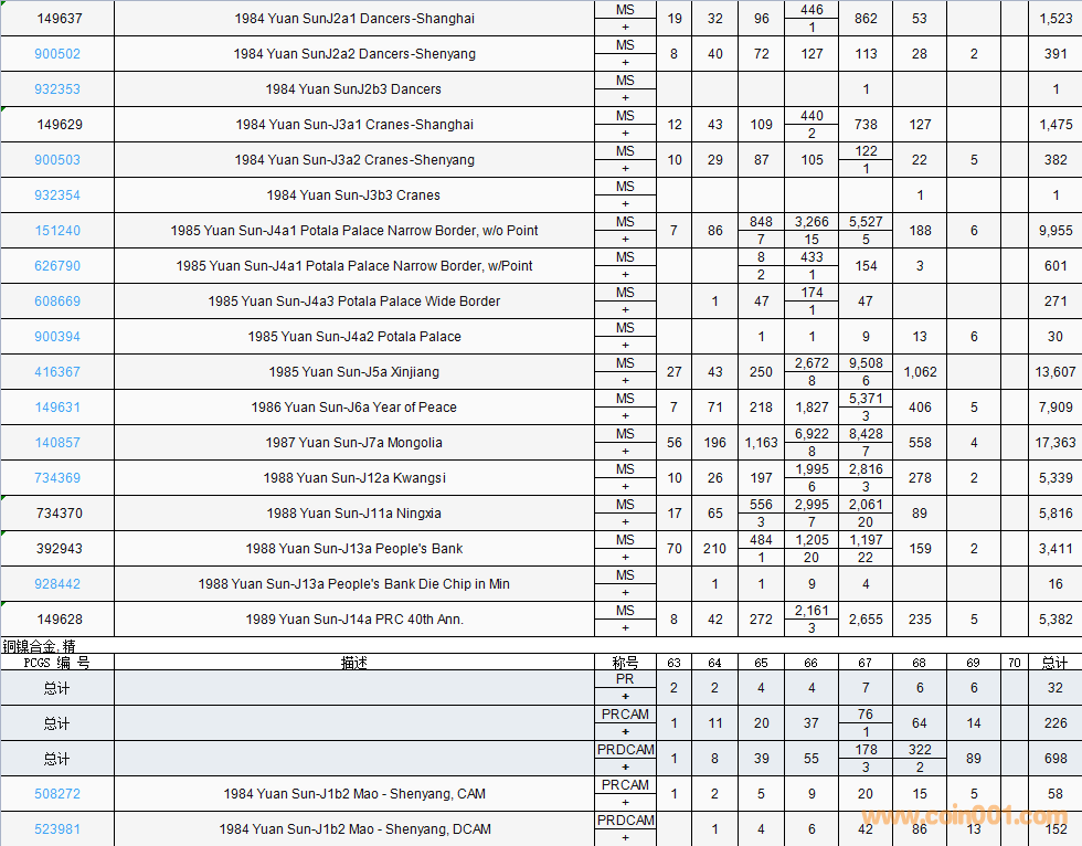 PCGS硬幣評級數(shù)量報(bào)告( ..