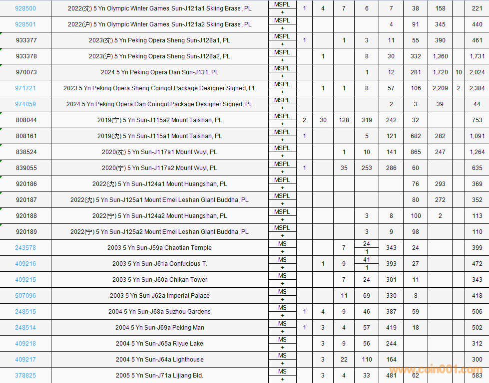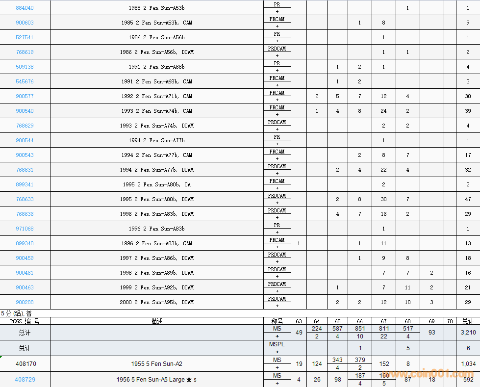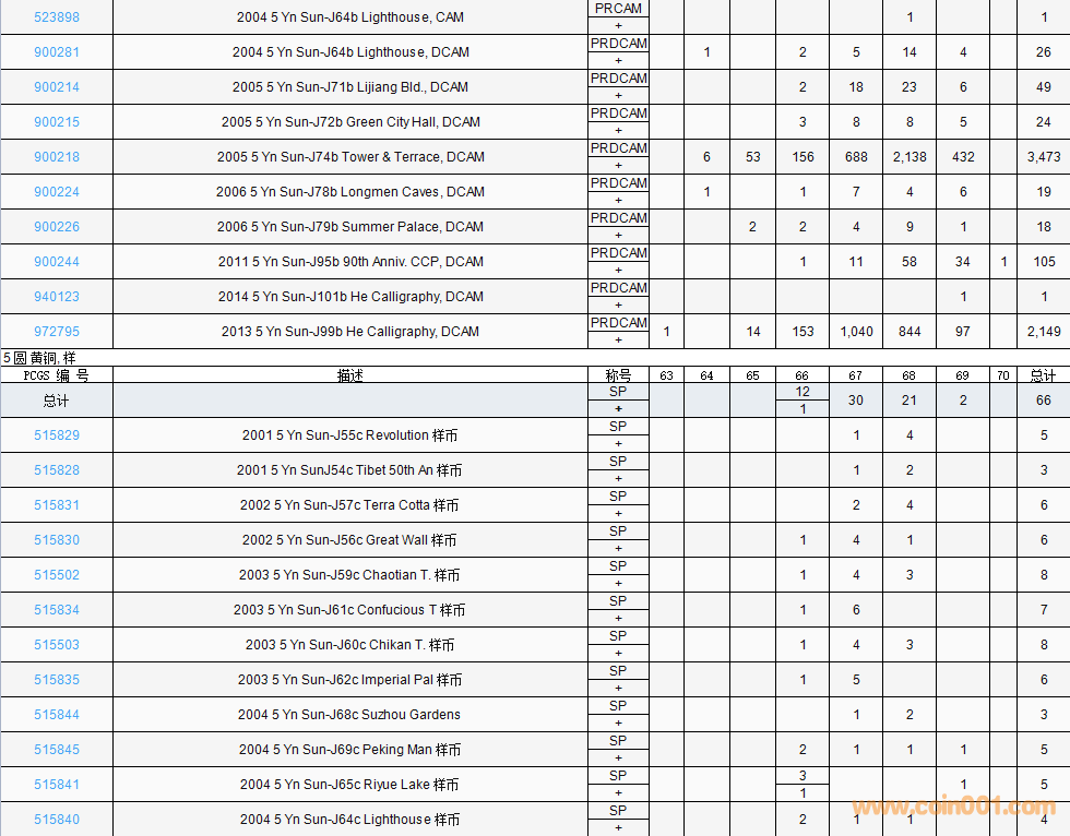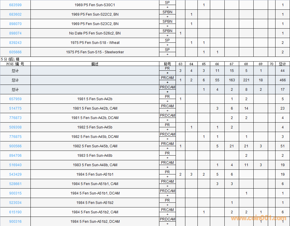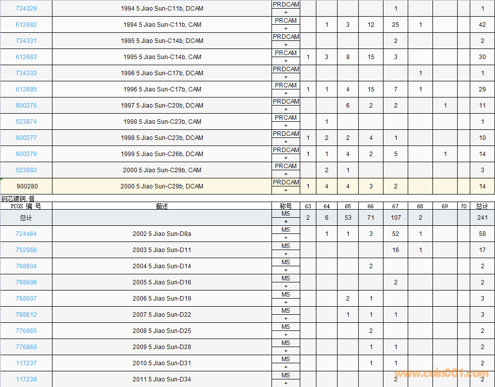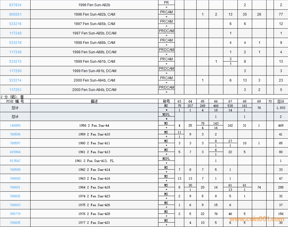 PCGS硬幣評級數(shù)量報(bào)告( ..