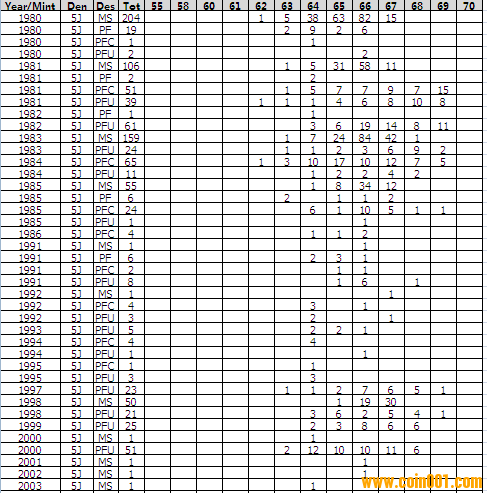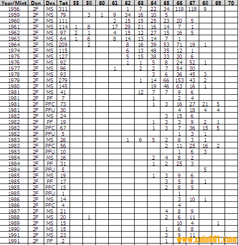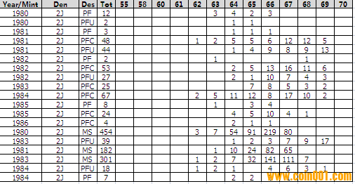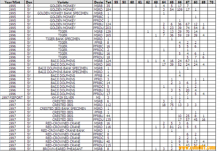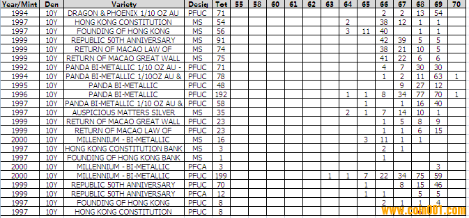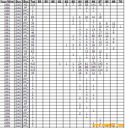 NGC硬幣評級分?jǐn)?shù)分布 ..