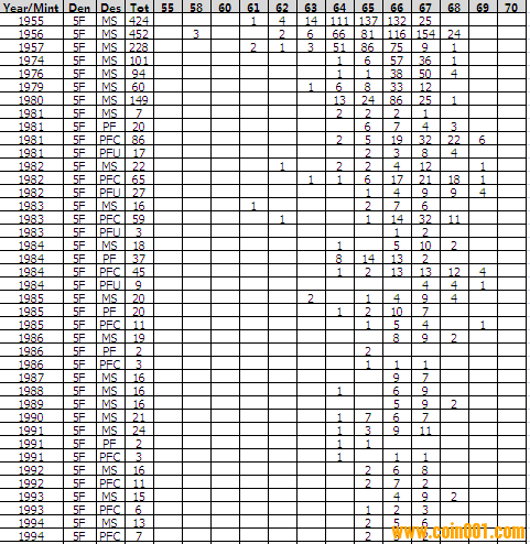 NGC硬幣評(píng)級(jí)分?jǐn)?shù)分布 ..