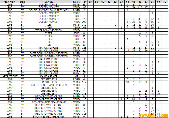 NGC硬幣評級分數(shù)分布 ..