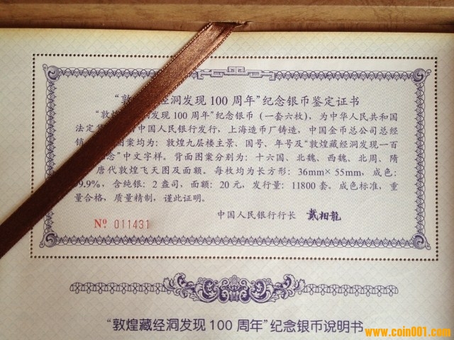 引用 引用樓主申允燮于2013-02-24 13:06發(fā)表的 2000年“敦煌藏經(jīng)洞發(fā)現(xiàn)100周年”紀(jì)念2盎司銀幣6枚(共12盎司) : 2000年“敦煌藏經(jīng)洞發(fā)現(xiàn)100周年”紀(jì)念2盎司銀幣6枚(共12盎司) 1.8萬 原封 全品