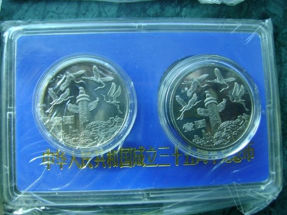 品相好得不得了,而且最要命的是它的版子非常深,立體感極強(qiáng),由于建國35周年流通紀(jì)念幣精制幣發(fā)行量多達(dá)14萬套,所以制作精制幣是循環(huán)更替了多付模具,經(jīng)過我們的仔細(xì)觀察發(fā)現(xiàn)很多建國35周年精制幣有些版子的精制幣鏡面效果與噴砂的珠光有嚴(yán)重退化現(xiàn)象.甚至發(fā)現(xiàn)了很多精制幣其實(shí)只有單面精制(因?yàn)樾g(shù)語:PROOF)工藝的,另一面呈現(xiàn)出半精制(PROOF?。蹋桑耍牛┕に?,當(dāng)然還有發(fā)現(xiàn)很多人誤把兩面都只能算是半精制(PROOF?。蹋桑耍牛┲苯赢?dāng)成是精制幣的,不過沒辦法,初期我國精制幣都算是探索階段,實(shí)驗(yàn)性很強(qiáng)的,當(dāng)然有時(shí)設(shè)計(jì)規(guī)劃人員的意圖很難在一線工人手里能夠領(lǐng)會,有些完全不能歸之為精制幣的建國35周年流通紀(jì)念幣的半精制幣竟然也被檢驗(yàn)員允許出廠,這真是中國精制幣目前還不為大眾所熟知的一個(gè)原因吧,這次我購進(jìn)的這批沈陽廠制的建國35周年流通紀(jì)念幣精制幣鏡面實(shí)在是相當(dāng)光亮,噴砂面也是十分出彩,沒得說了,數(shù)量不多,一共進(jìn)了就100套,歡迎大家前來購買,可惜這次的包裝也太不人性化了,竟然是把大典的兩枚拼盒在一個(gè)雙枚盒子中的,實(shí)在是奇怪的現(xiàn)象.