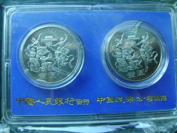從收藏研究的角度,郵幣封優(yōu)勢明顯,不過正因?yàn)槿绱?郵幣封被拆的不多,其存世量可能反而在三種包裝中是最多的.另外,沈陽版建國35周年精制幣還有一種包裝,就是兩個(gè)大典裝在一起加兩個(gè)(華表+歌舞)藍(lán)卡,外面有塑料膜套住.一買就得兩套.這種包裝的精制幣版子特別深,包裝上的燙金字和一般的2+1包裝還是有區(qū)別的.下面是當(dāng)時(shí)賣家的介紹: