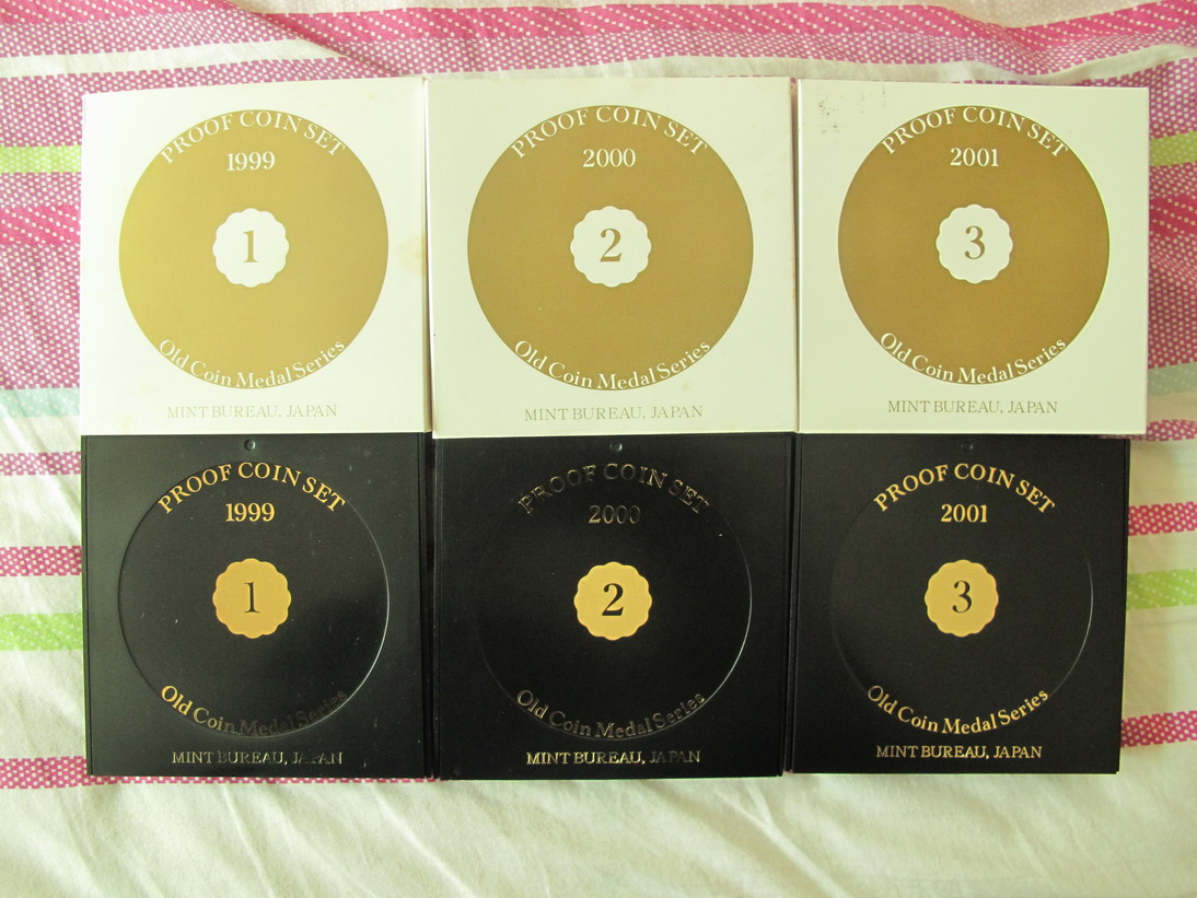 3、1999-2001年老硬幣紀念章1-3系列日本精制套幣(1-3為一組俗稱圓盒版帶純銀章) 900/組 有2組