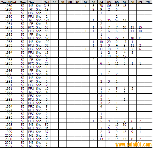 NGC硬幣評級分數(shù)分布 ..