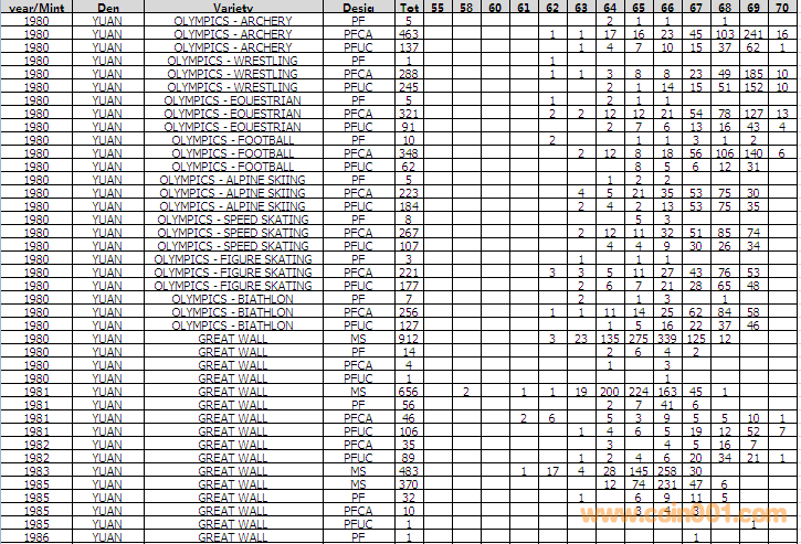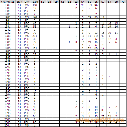 NGC硬幣評(píng)級(jí)分?jǐn)?shù)分布 ..