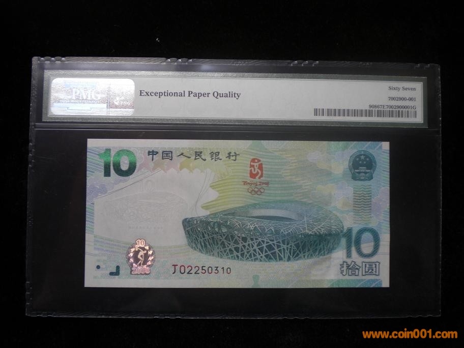 PMG67分大陸奧運鈔,全 ..