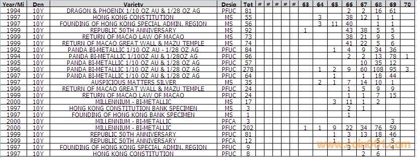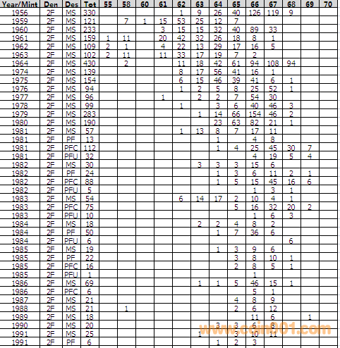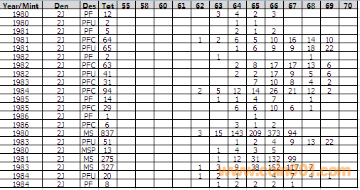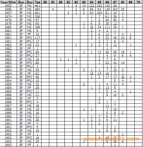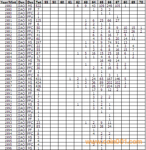 NGC硬幣評級分?jǐn)?shù)分布 ..