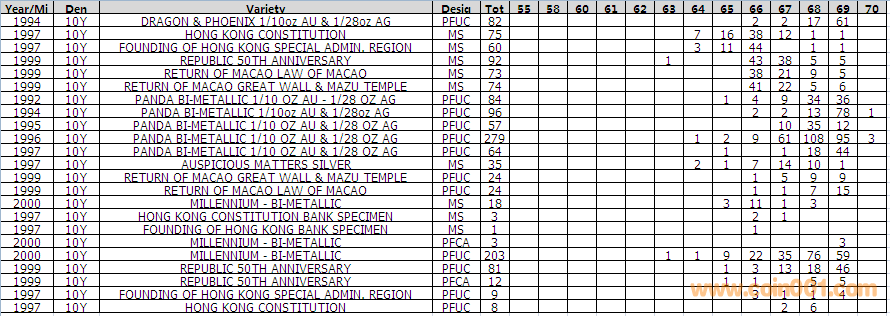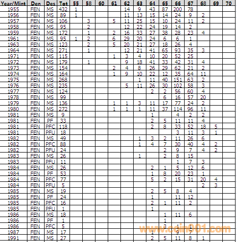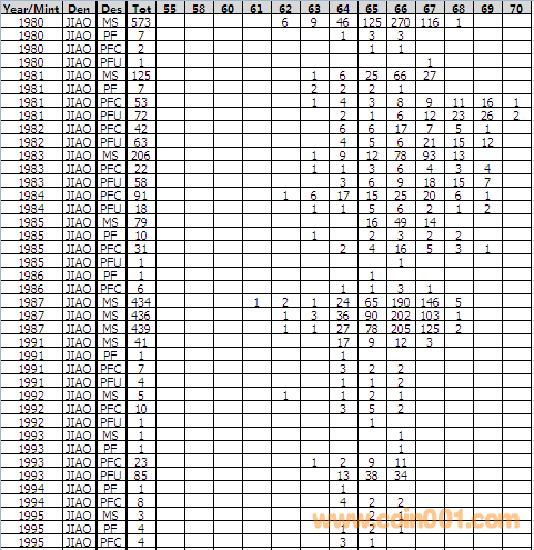 NGC硬幣評(píng)級(jí)分?jǐn)?shù)分布 ..