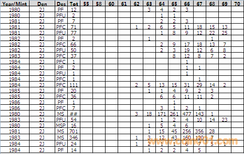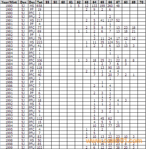 NGC硬幣評級分數(shù)分布 ..