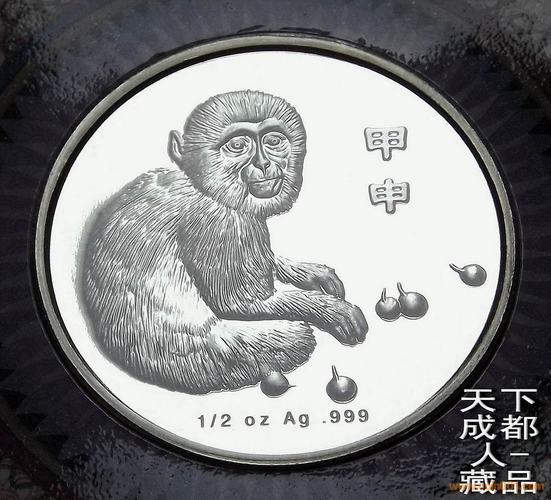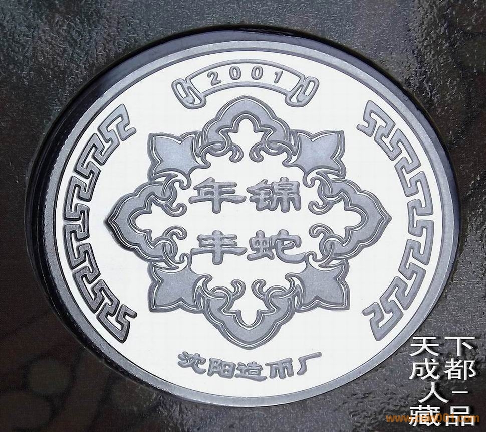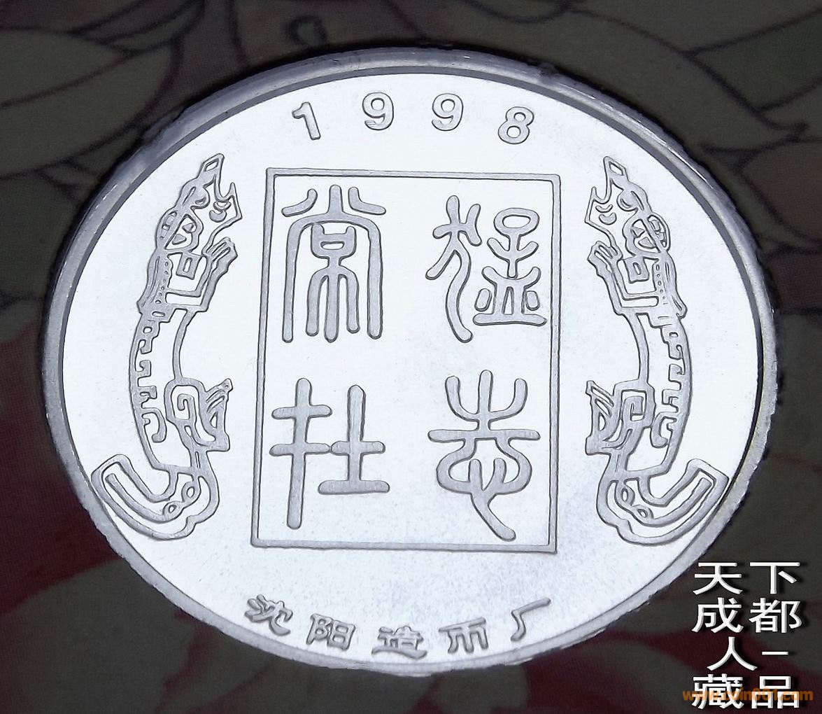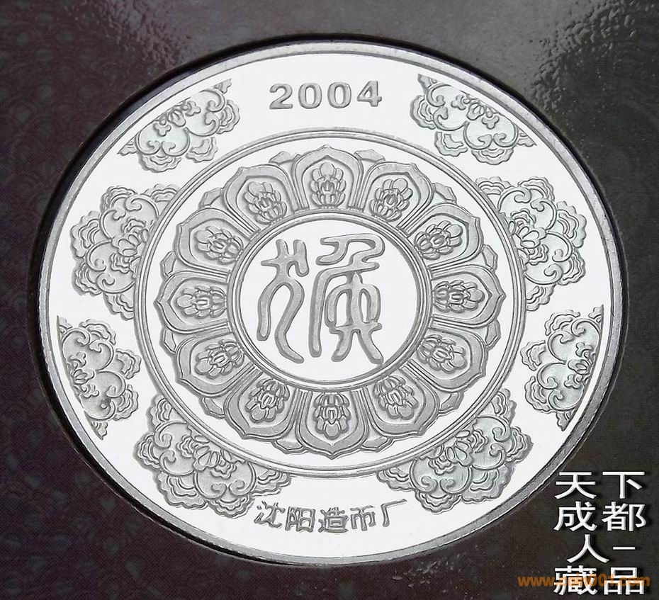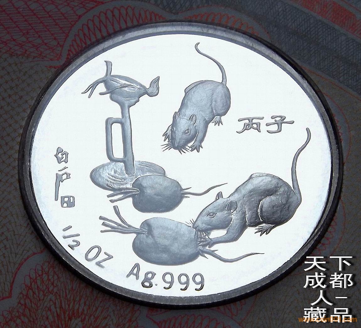 沈陽造幣廠從1996年起逐年鑄造發(fā)行《1996年生肖鼠、1997年生肖牛、1998年生肖虎、1999年生肖兔、2001年生肖蛇、2003年生肖羊、2004年生肖猴(精制)純銀紀念章賀歲卡》共7張賀卡7枚銀章裝(總重3.5盎司共109克)。各生肖章材質(zhì)純銀、精制帶齒邊工藝,各章重量1/2盎司、成色99.9%、直徑33毫米。 各銀章均刊有重量和成色字樣、質(zhì)量標準、重量合格。沈幣原折式鑲嵌生肖銀章賀歲卡裝幀。