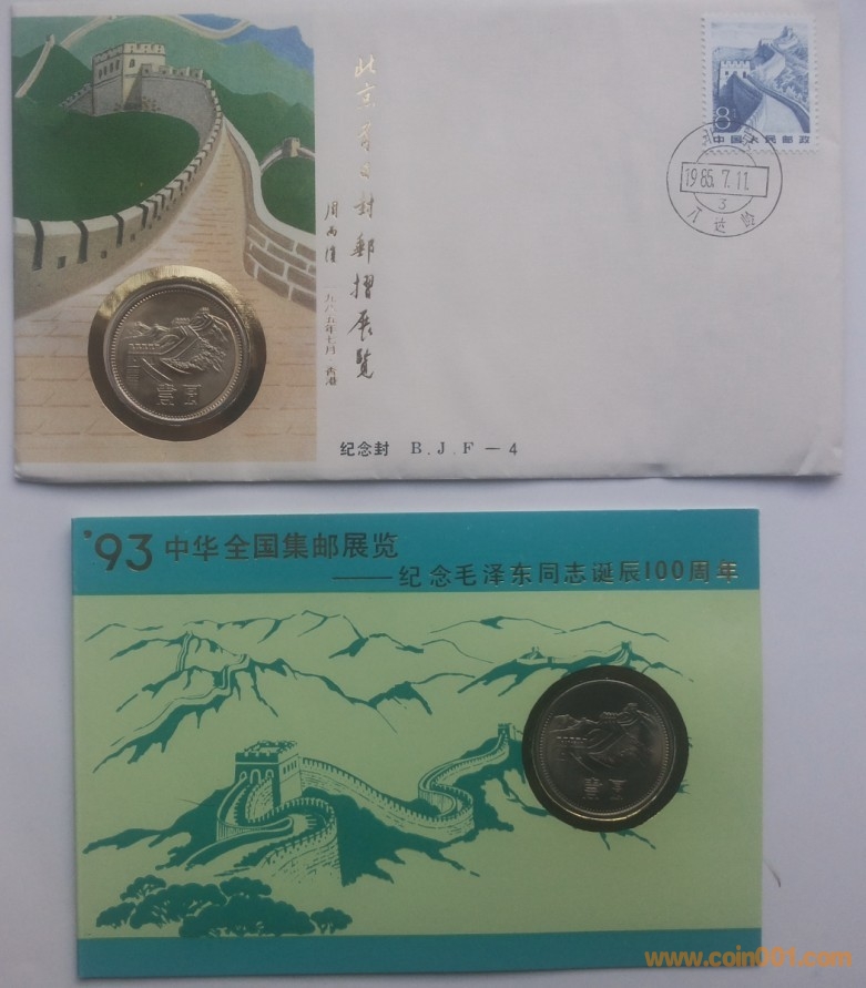 93年由中華全國(guó)集郵聯(lián)合會(huì),中國(guó)印鈔造幣總公司聯(lián)合發(fā)行——JYLK2《93中華全國(guó)集郵展覽——紀(jì)念毛澤東同志誕辰100周年》明信片鑲嵌81年長(zhǎng)城幣封2萬(wàn)枚,為建國(guó)以來(lái)首次,發(fā)行后發(fā)現(xiàn)存在兩個(gè)錯(cuò)誤: