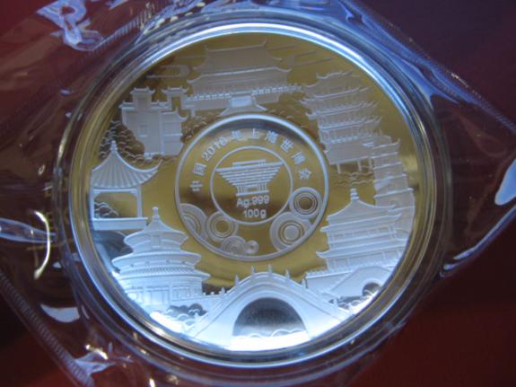 金總出品 100克純銀世博盤(pán),此紀(jì)念銀盤(pán),是中國(guó)金幣總公司發(fā)行.做工精美,細(xì)膩.發(fā)行量很小,980元
