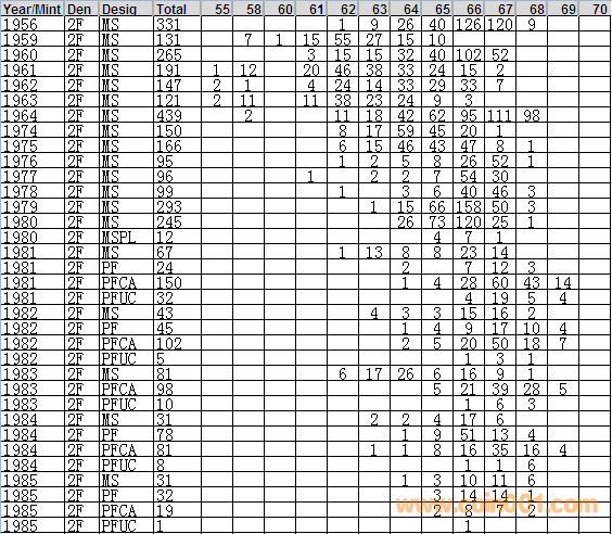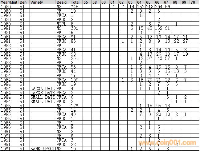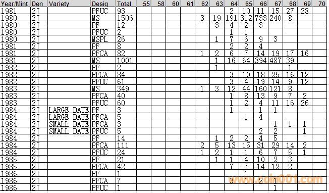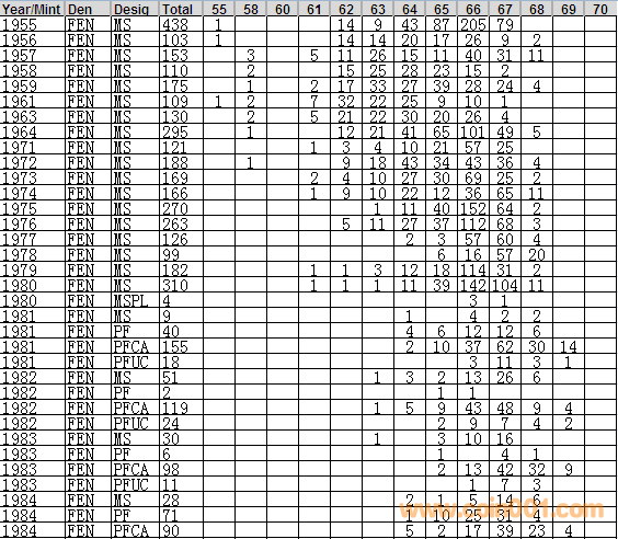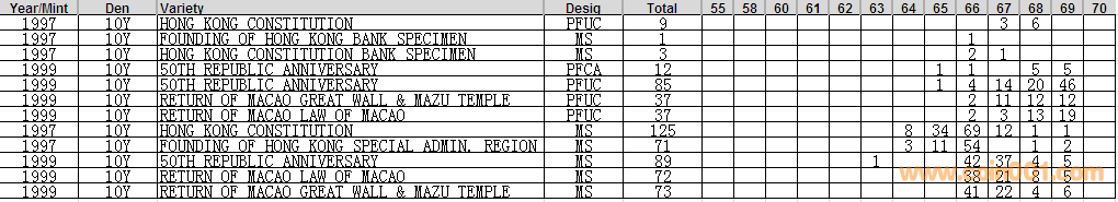 NGC硬幣評級分?jǐn)?shù)分布 ..