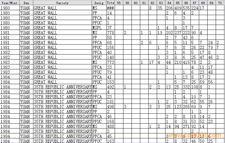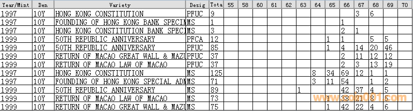 NGC硬幣評(píng)級(jí)分?jǐn)?shù)分布 ..