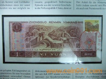 中國慶祝香港回歸日1990年版1元收藏頁 166元