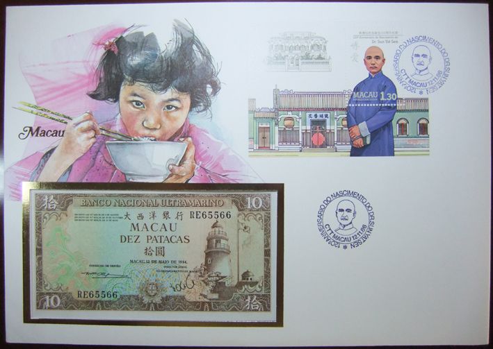 澳門1984年大西洋銀行10元孫中山誕生120周年紀(jì)念幣封 220元