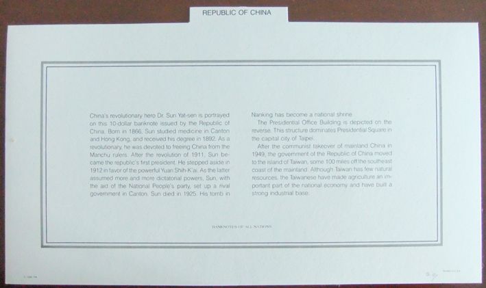 中華民國臺(tái)灣銀行民國六十五年拾圓富蘭克林裝幀幣封 88元