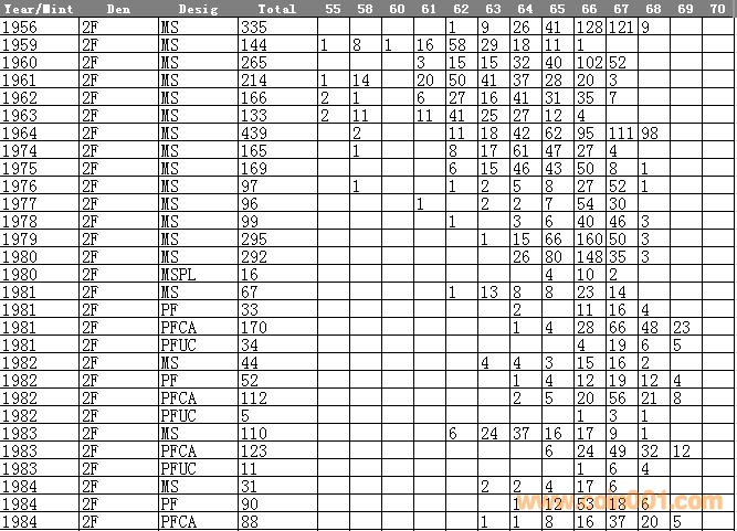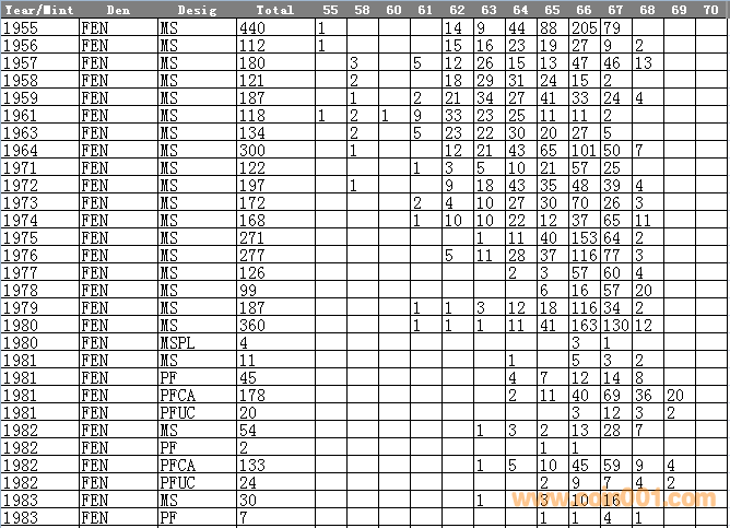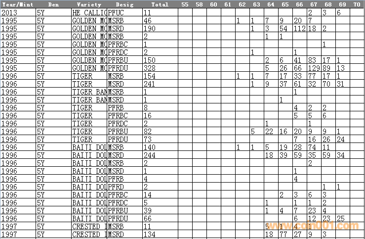NGC硬幣評級分?jǐn)?shù)分布 ..