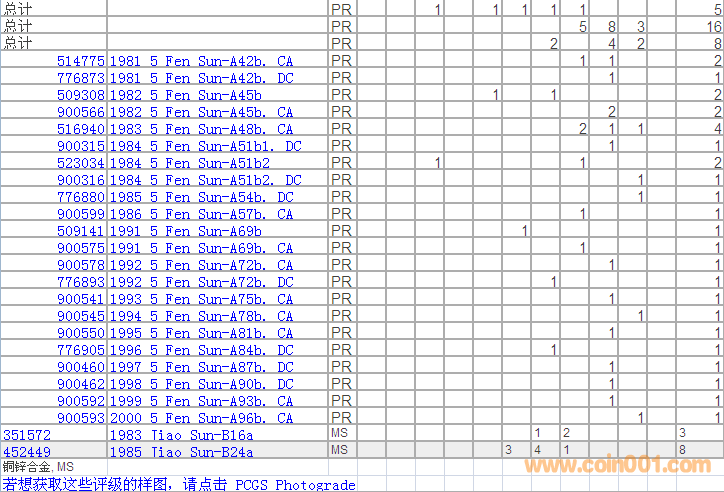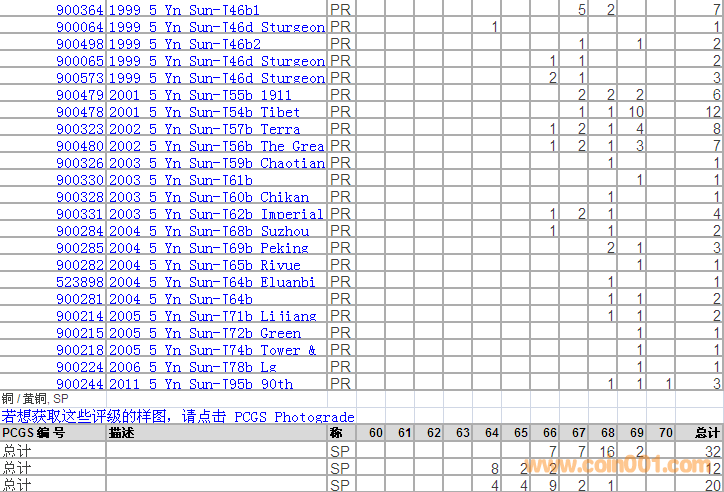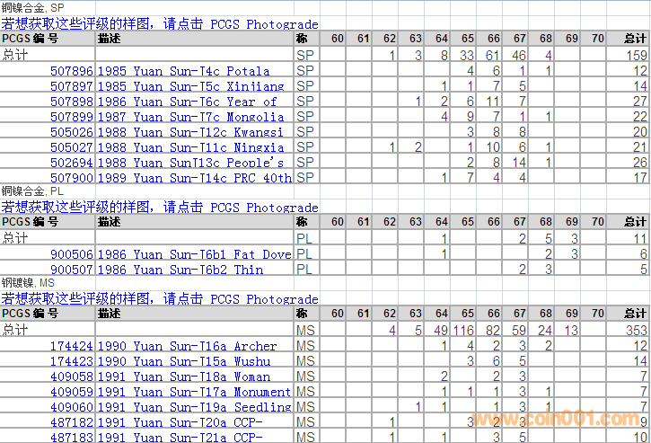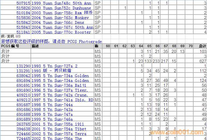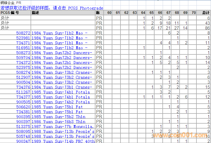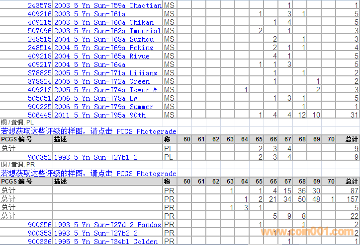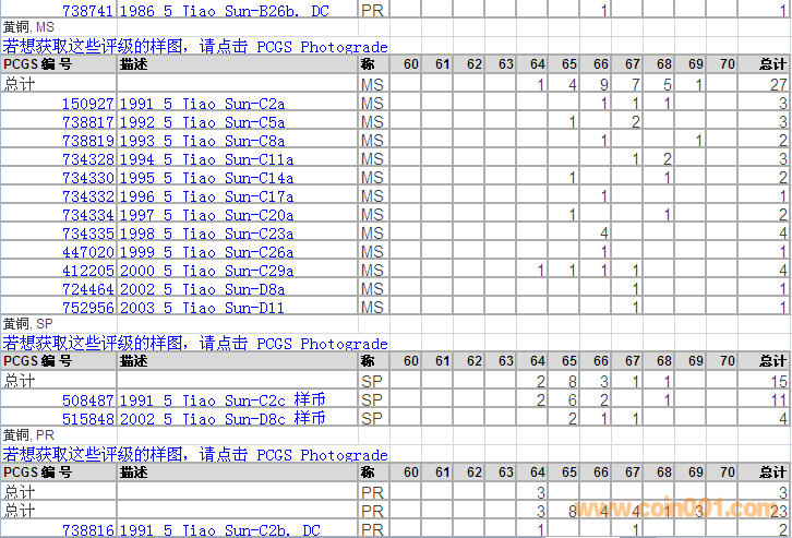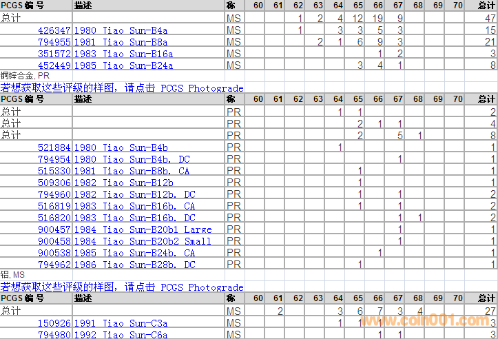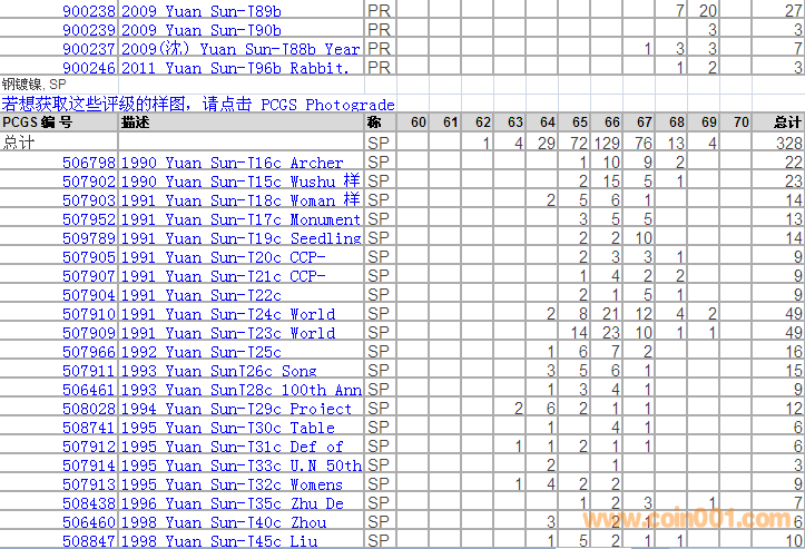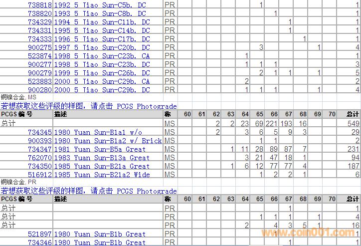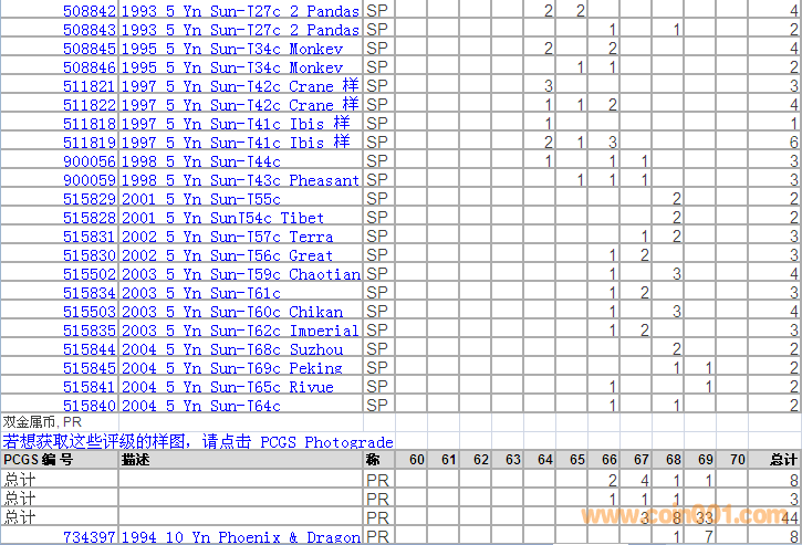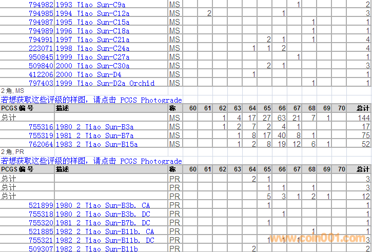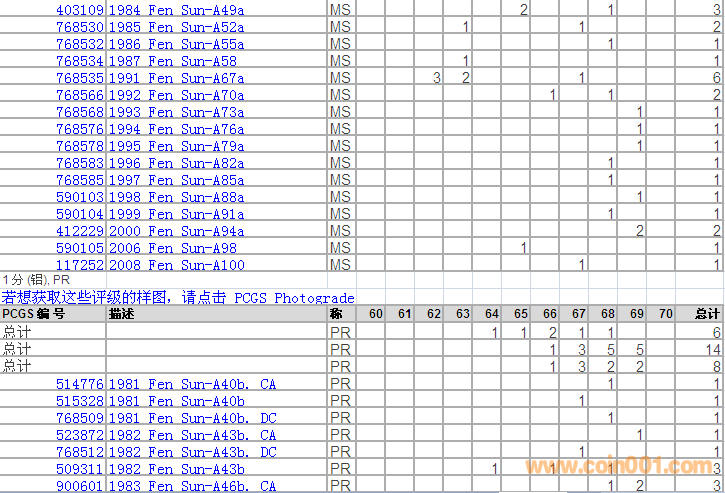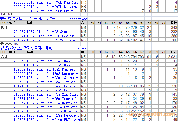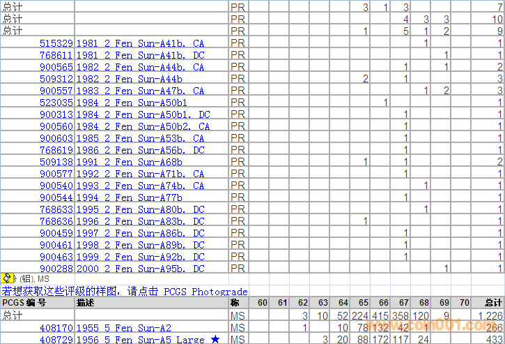 PCGS硬幣評級分?jǐn)?shù)分布 ..