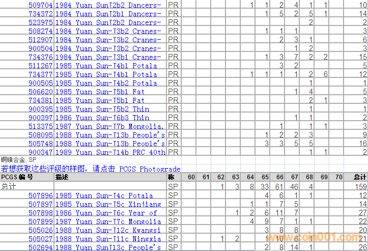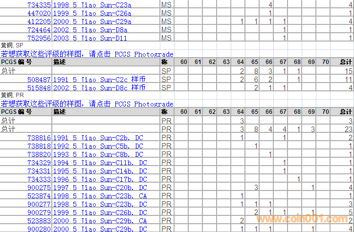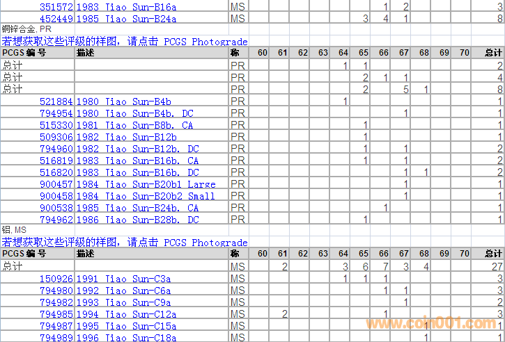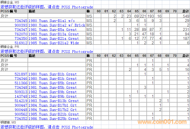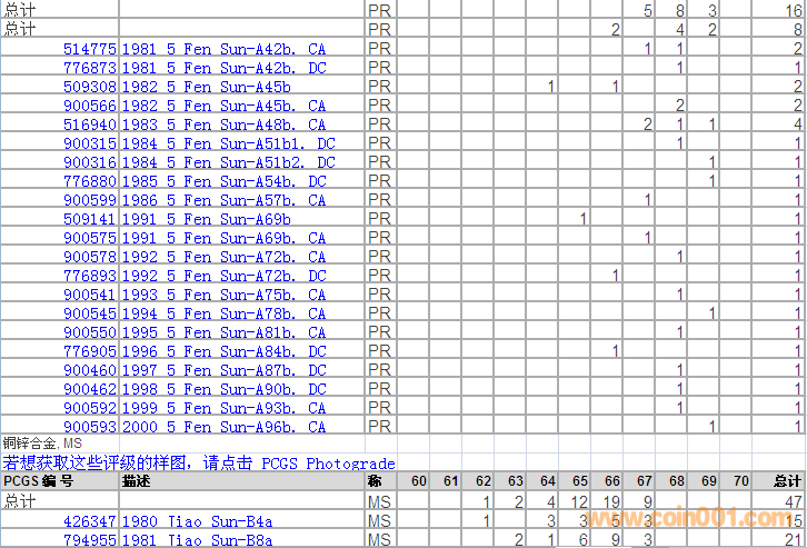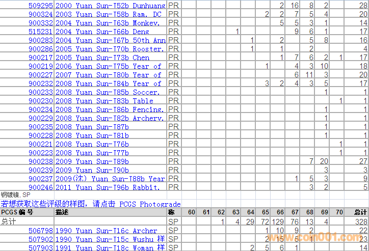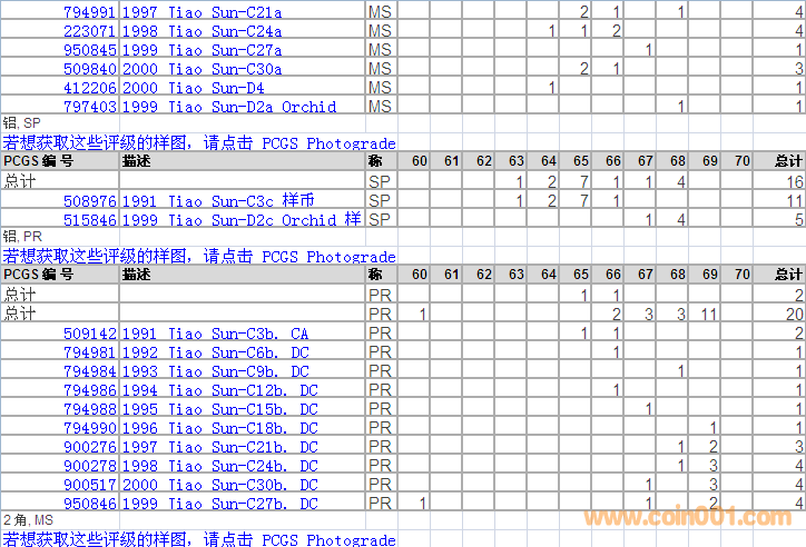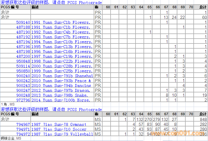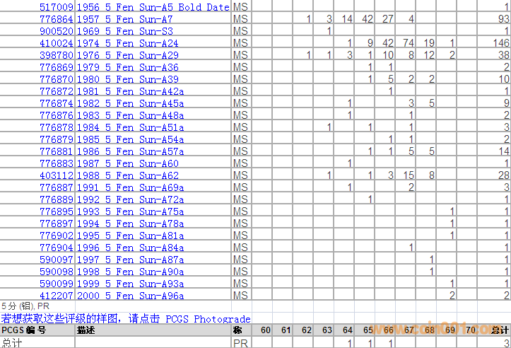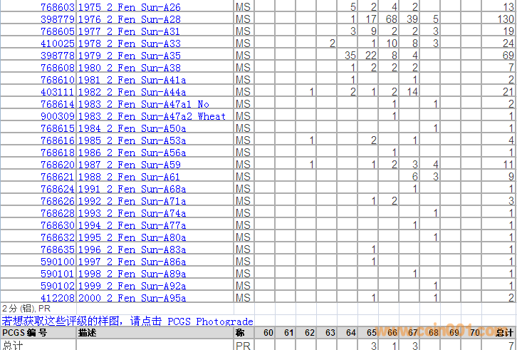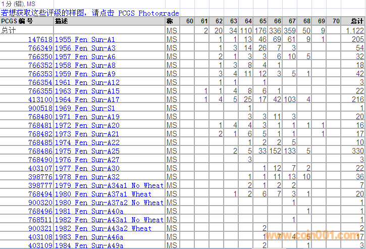 PCGS硬幣評級分?jǐn)?shù)分布 ..