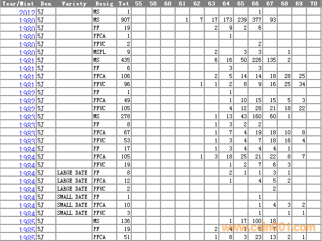 NGC硬幣評(píng)級(jí)分?jǐn)?shù)分布 ..
