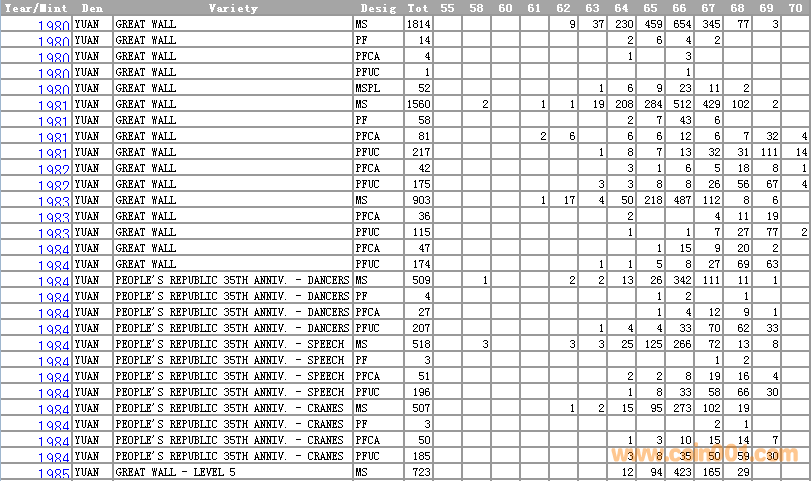 NGC硬幣評(píng)級(jí)分?jǐn)?shù)分布 ..