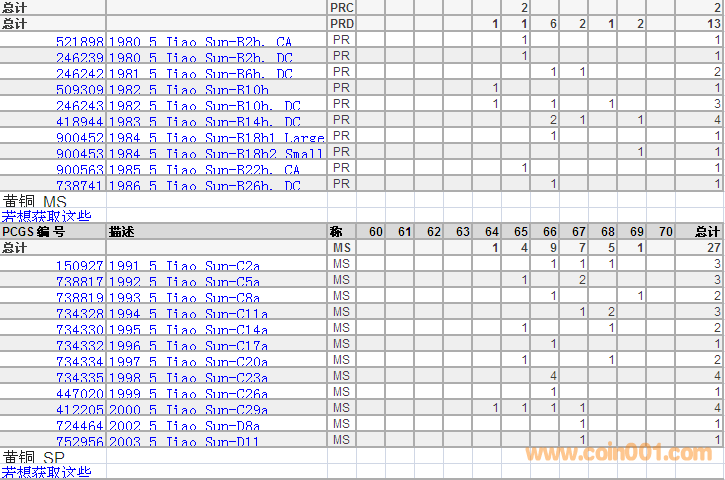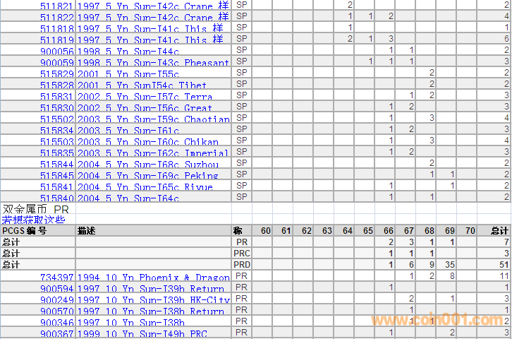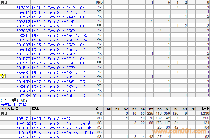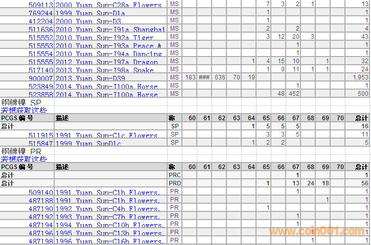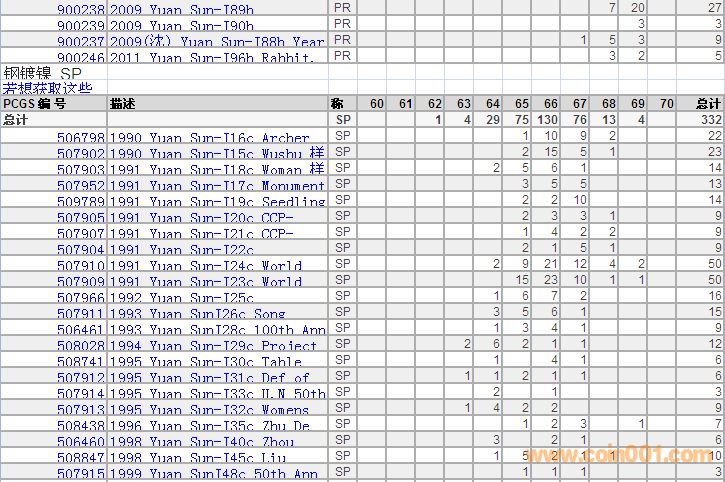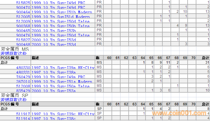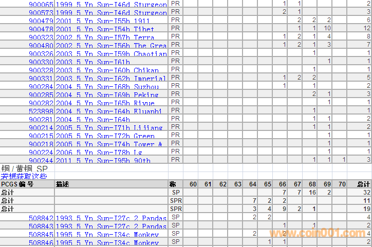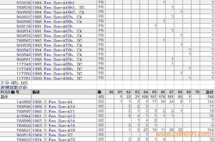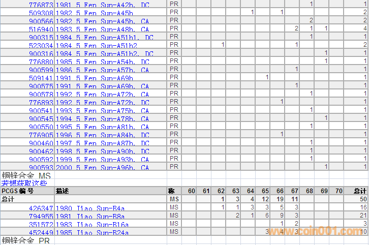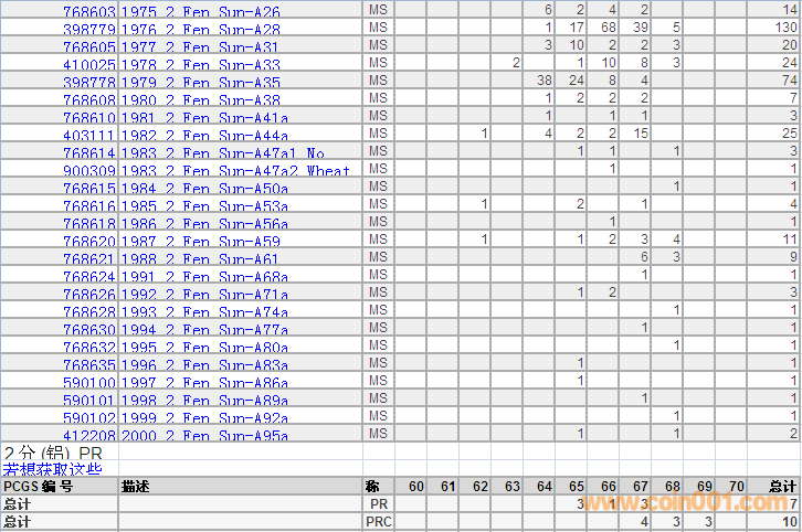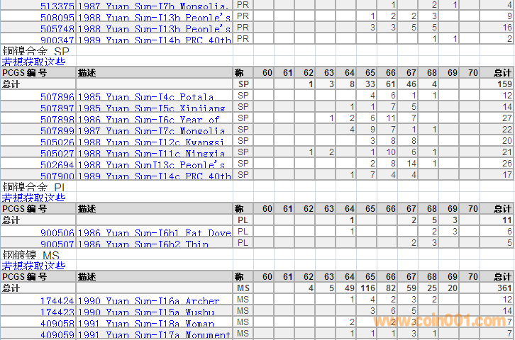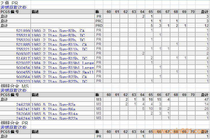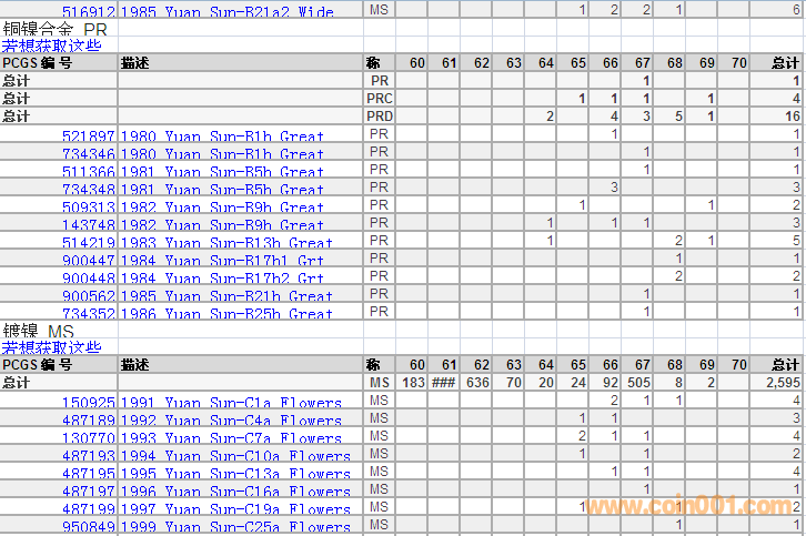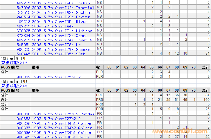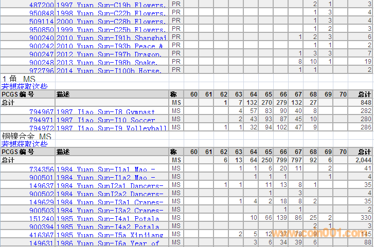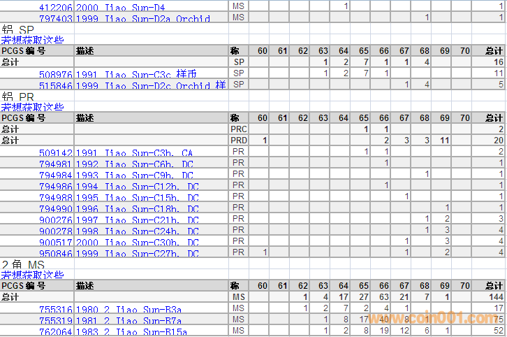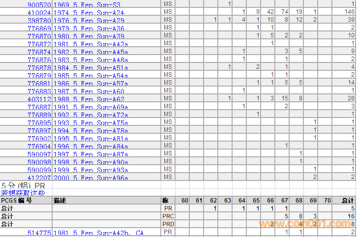 PCGS硬幣評級分數(shù)分布 ..