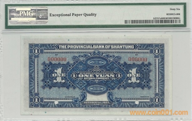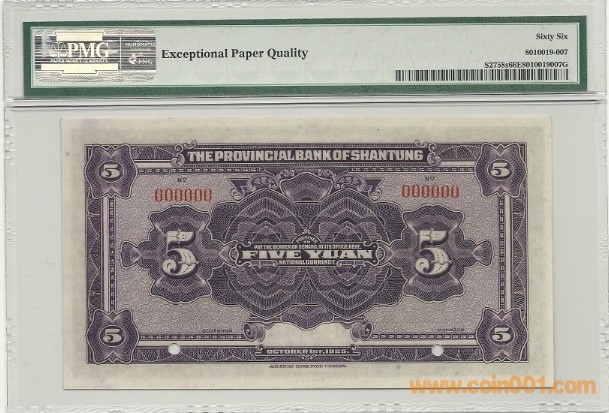 PMG66 票樣 山東省銀行 ..