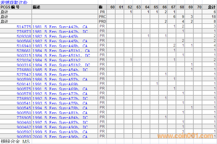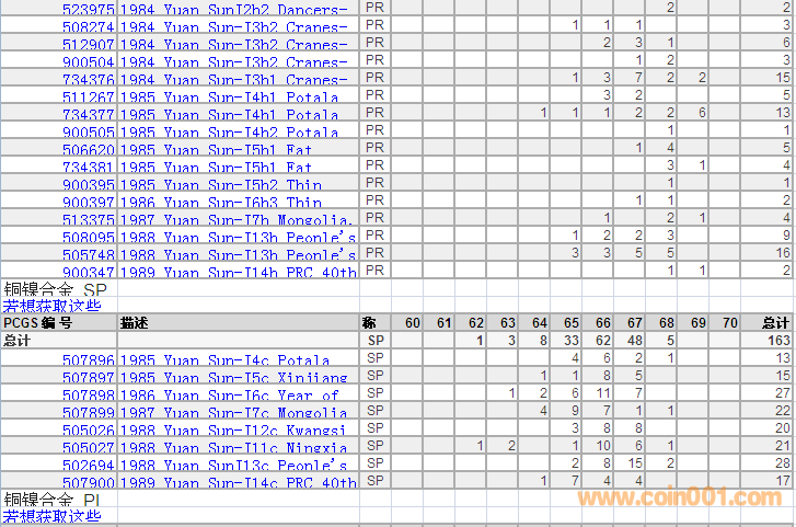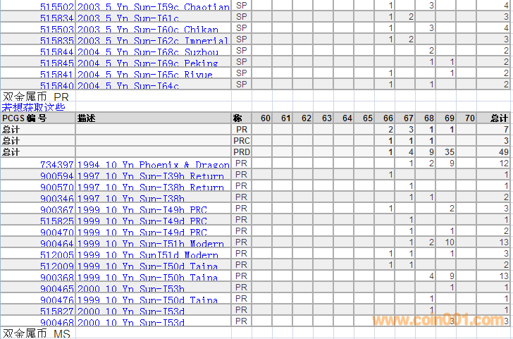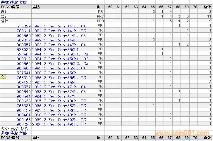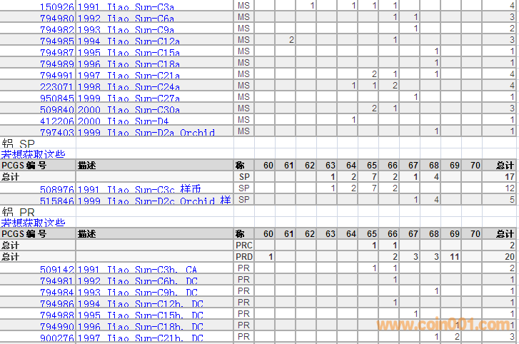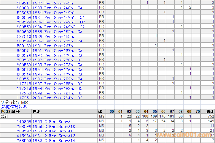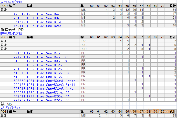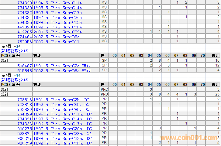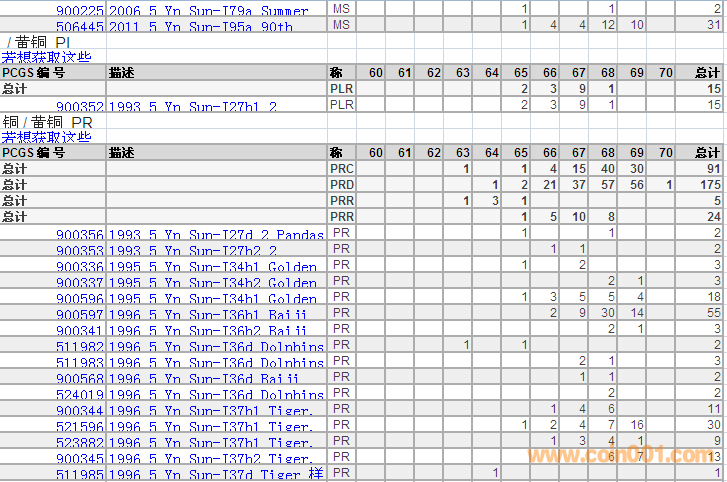 PCGS硬幣評(píng)級(jí)分?jǐn)?shù)分布 ..