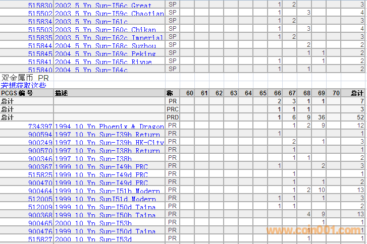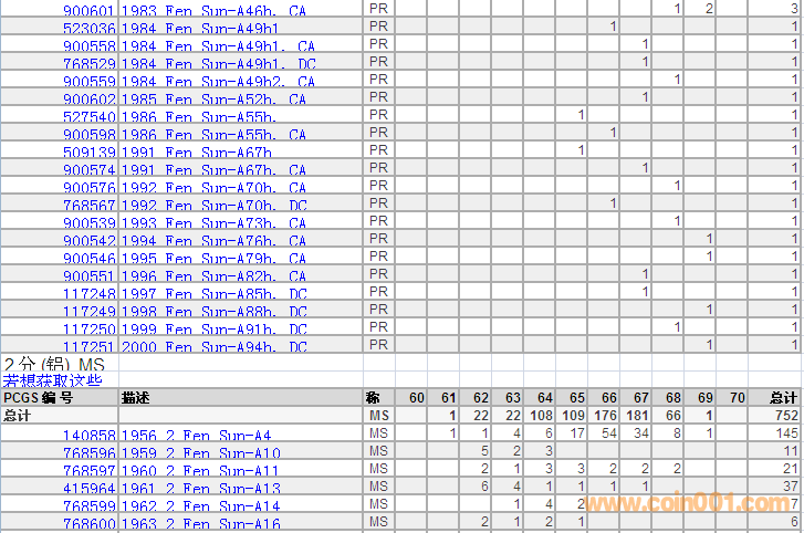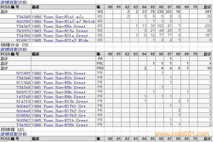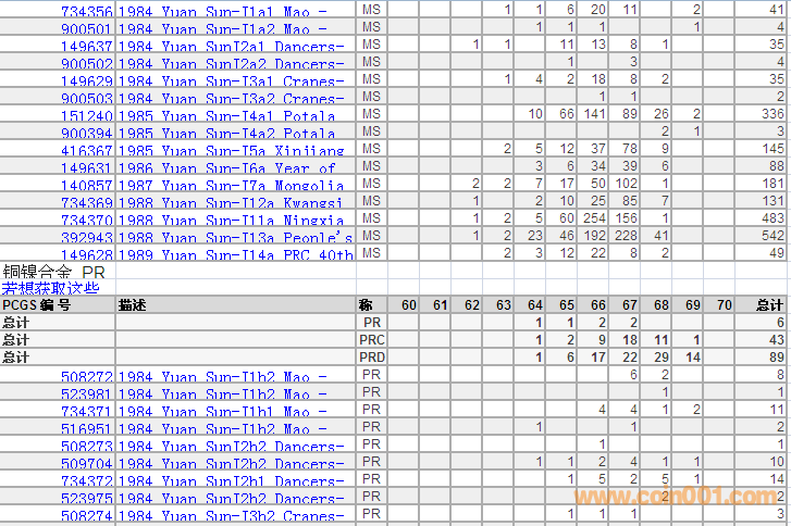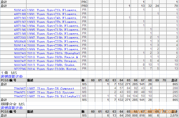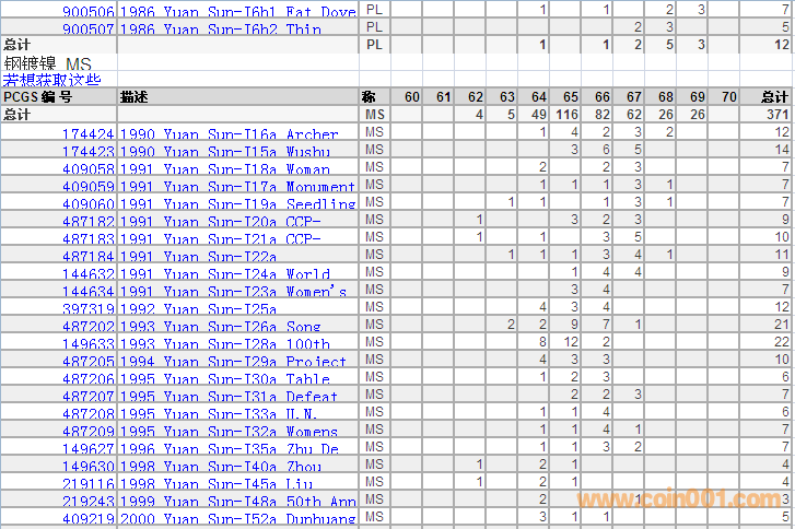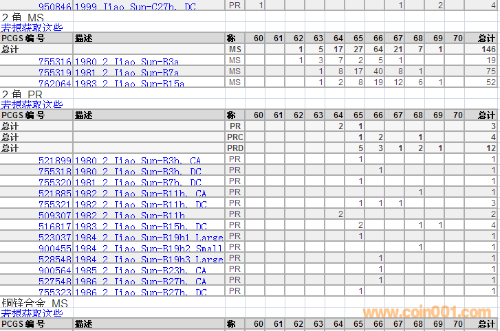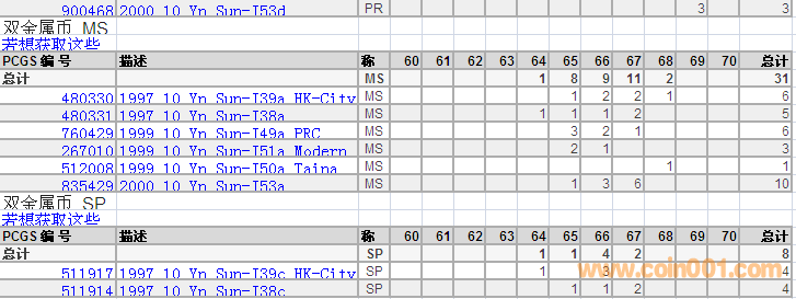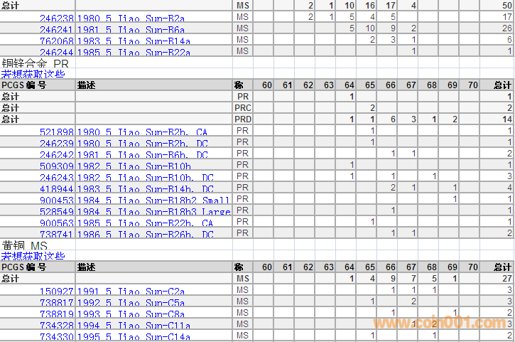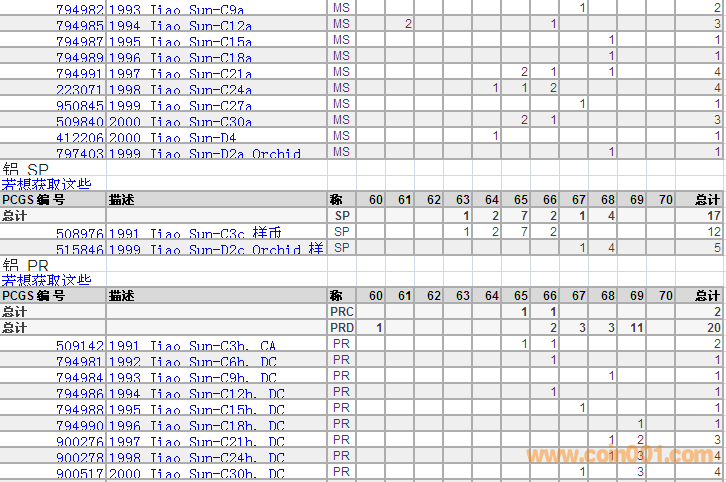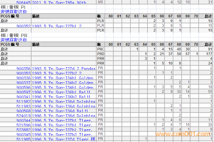 PCGS硬幣評級分?jǐn)?shù)分布 ..