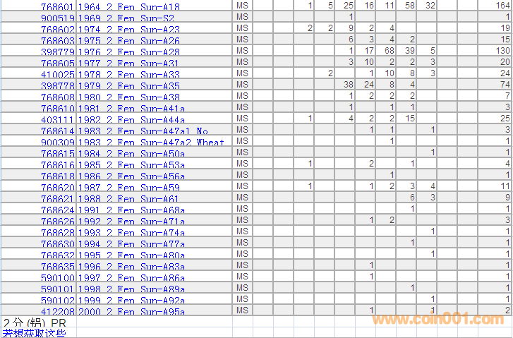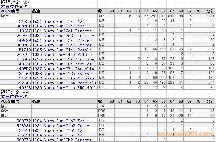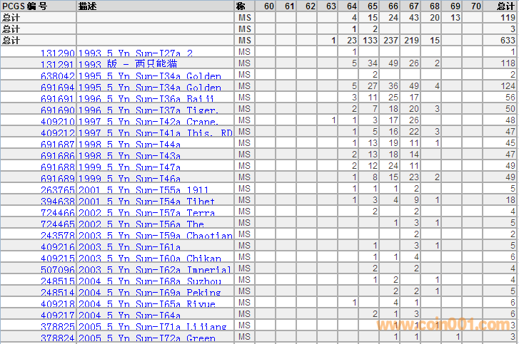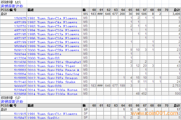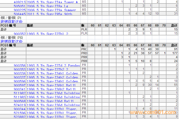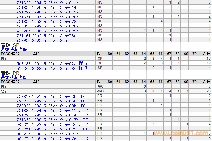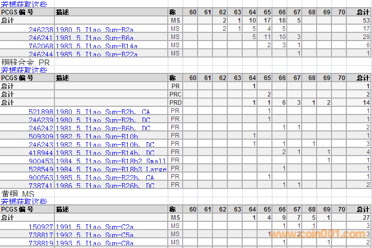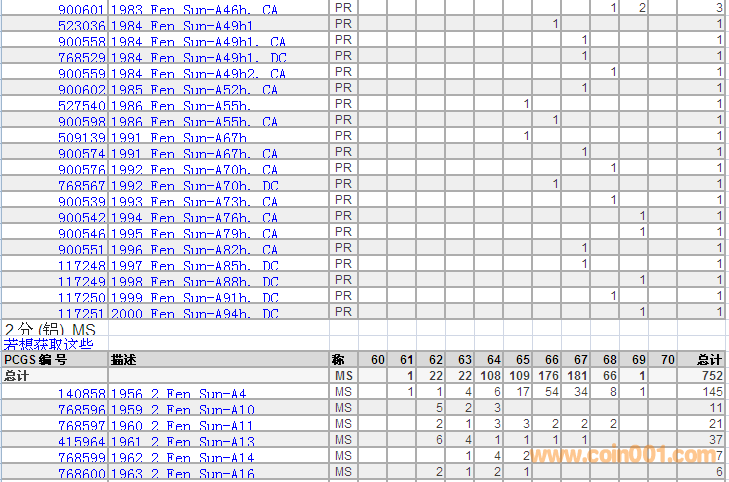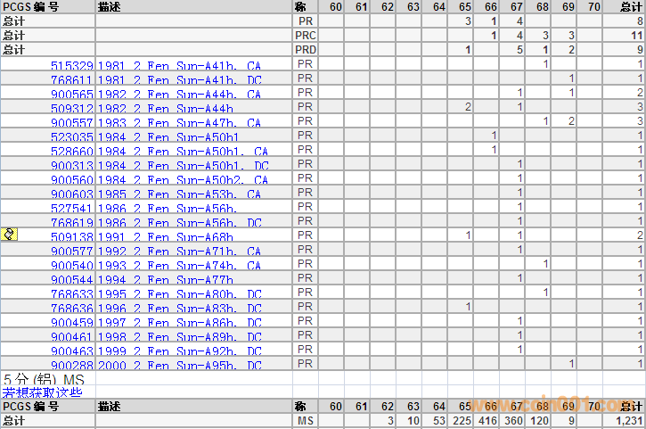 PCGS硬幣評級分?jǐn)?shù)分布 ..