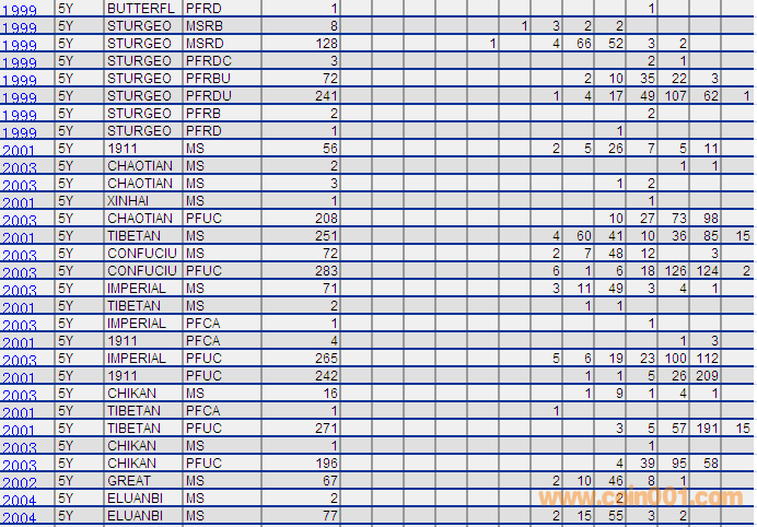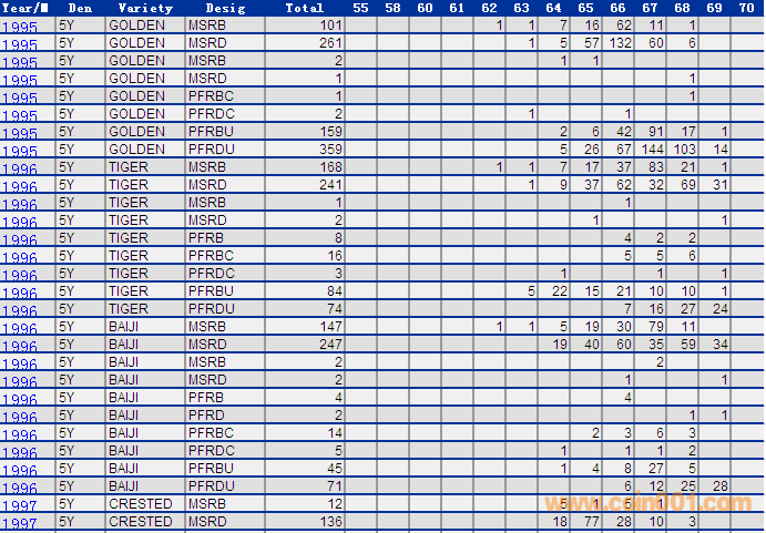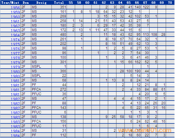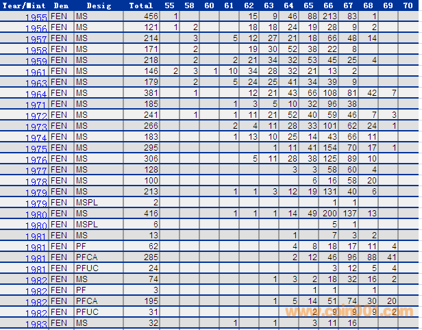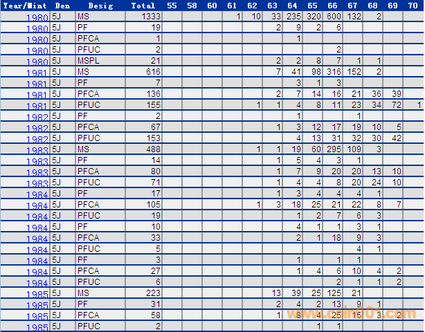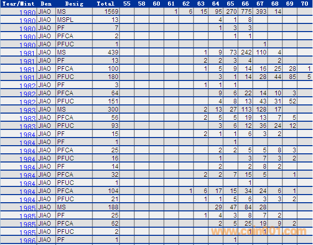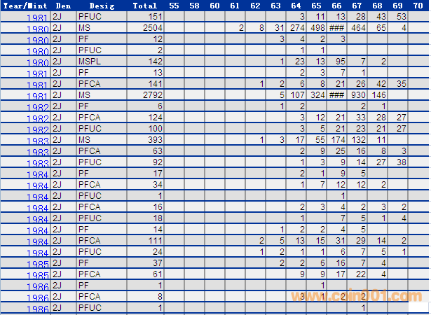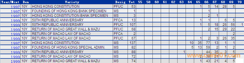 NGC硬幣評級分?jǐn)?shù)分布 ..