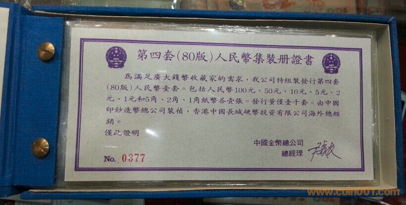 第四套人*民*幣1980年套幣(中國印鈔造幣總公司裝幀)
