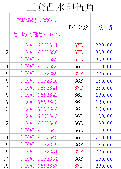 現(xiàn)貨三套刀評凸版水印伍角PMG67E、66E評級幣(好號無47)