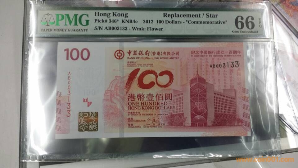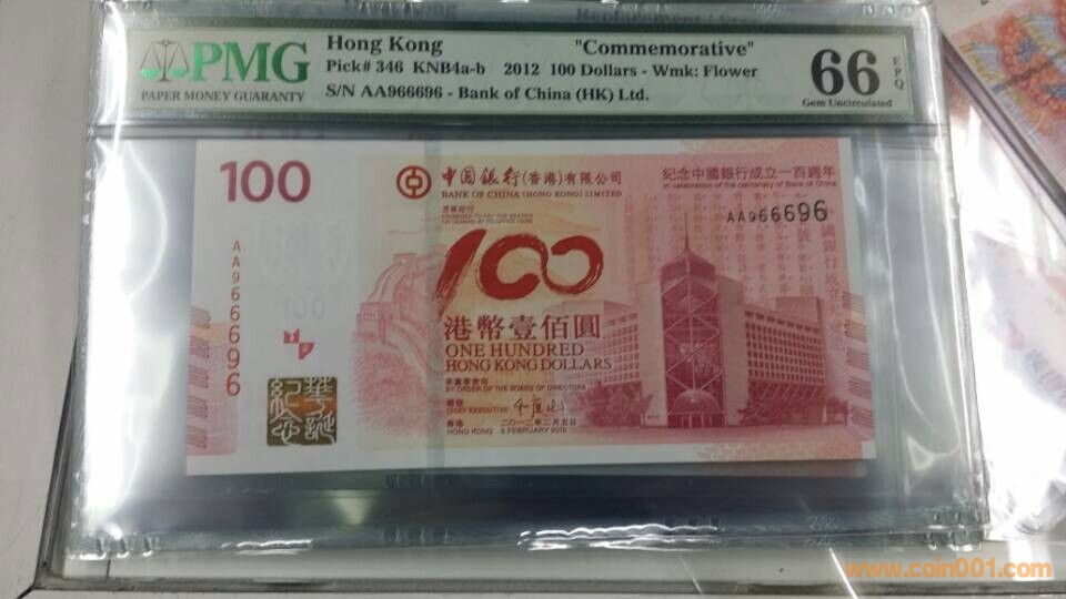 出2012年,AB,AA冠中銀鈔壹佰元,PMG,66分