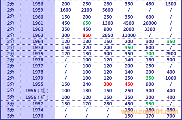 2015,1,1早期硬分幣報(bào)價(jià) ..