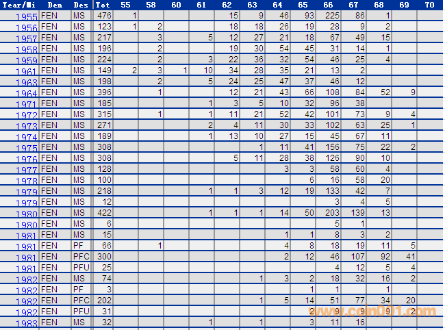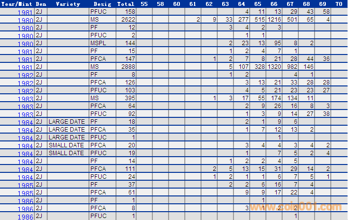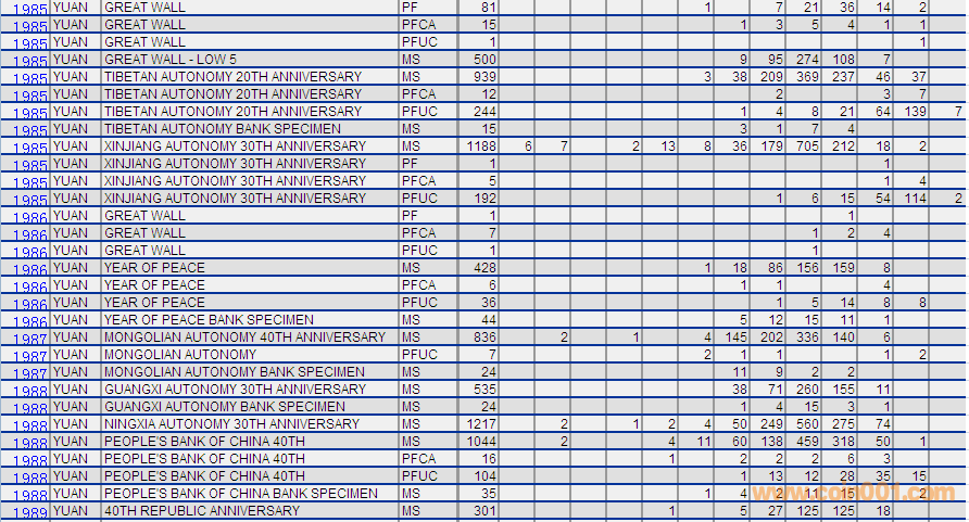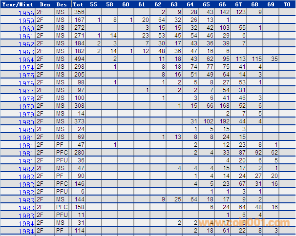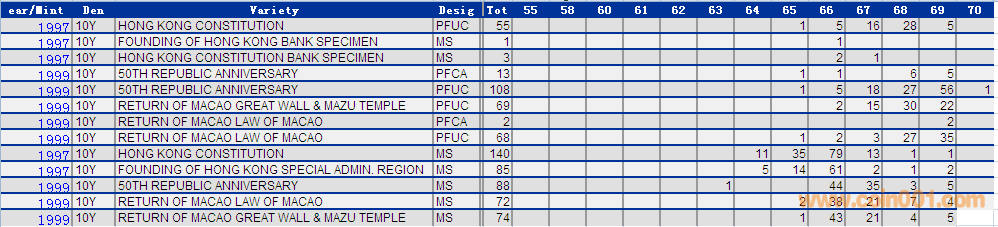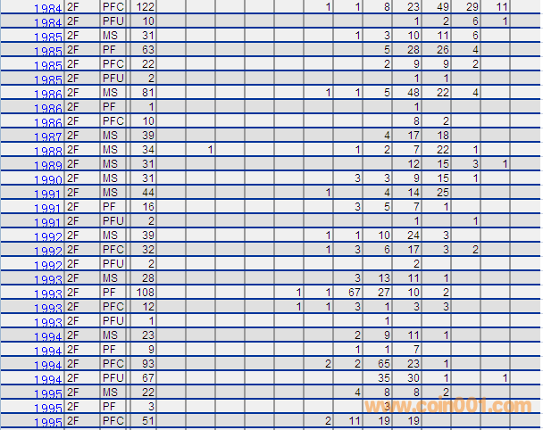NGC硬幣評級分數(shù)分布 ..