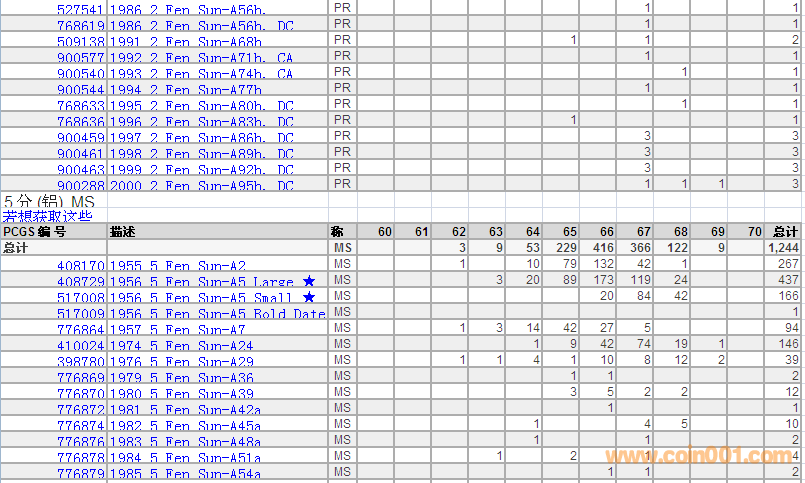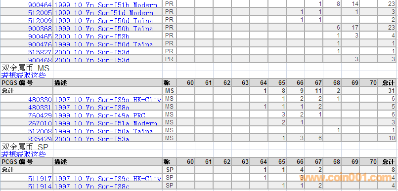 PCGS硬幣評級分?jǐn)?shù)分布 ..