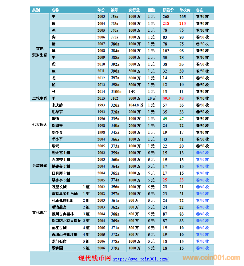 2015.3.14流通紀(jì)念幣報(bào)價(jià)