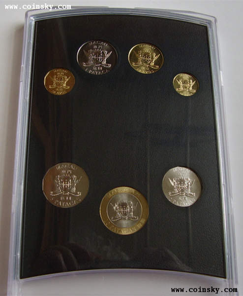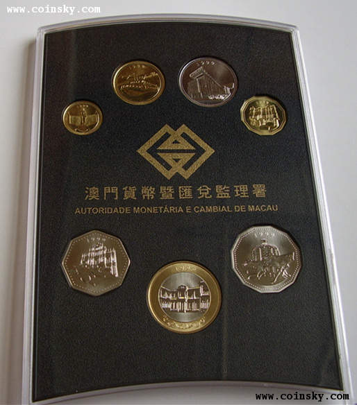 (1)商品全稱為“《’99澳門回歸》珍藏硬幣紀(jì)念套裝”,原盒塑封,一套七枚,內(nèi)盒印“澳門貨幣暨匯兌監(jiān)理署”字樣,含澳門幣拾圓、伍圓、貳圓、壹圓、伍毫、貳毫、壹毫硬幣各一枚;