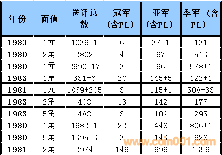 數(shù)據(jù)采集中國現(xiàn)代網(wǎng) http://www.coin001.cn/read.php?tid=62255 數(shù)據(jù)采集NGC硬幣評級分數(shù)分布表 (2015年3月3日) http://www.coin001.cn/read.php?tid=64910 數(shù)據(jù)采集NGC硬幣評級分數(shù)分布表 (2015年4月7日) 難度系數(shù)是動態(tài)的,評級量上升不管他是冠軍還是亞軍難度系數(shù)的分數(shù)一定會提高,總量上升是必然的,關鍵是看各個分數(shù)段有沒有上升和市場的需求有沒有變化(尤其是高分段)有時低分多和送評總數(shù)高不一定是壞事反而能襯托高分的稀缺性。如果某些品種的評級已經(jīng)接近飽和那他的難度系數(shù)分數(shù)就不會上升隨著時間的推移他的價值同樣能體現(xiàn)出來!通常這種集中放量和市場價格合適的話對于您來說的那個品種也許是最佳的買入時機。 評級的精髓就是品相的稀缺性和溢價,高分越少相應的難度系數(shù)就越高,關于這個計算公式我是通過深思熟慮考慮到了各種的可能性結合了大量的參考數(shù)據(jù),我個人認為在未來10年內除了幣的本身價值外,任何品種的評級幣難度系數(shù)分數(shù)越低其價值就越高,這也可以理解為評級除了保護錢幣狀態(tài)屬性外另外的一個精髓所在 我一直認為流通硬幣是非常適合評級的,主要基于流通的總量大流通的范圍廣,高品質未參與流通的硬幣總量較為稀缺評級難度的體現(xiàn)將更加明顯,其中我認為普制長城幣和早期分幣最適合評級,,希望我的難度排序能給準備加入這個領域的收藏者更多的幫助和參考,希望大家收藏愉快!!!