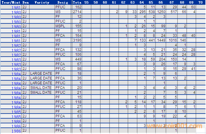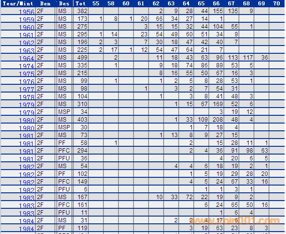 NGC硬幣評級分數(shù)分布 ..
