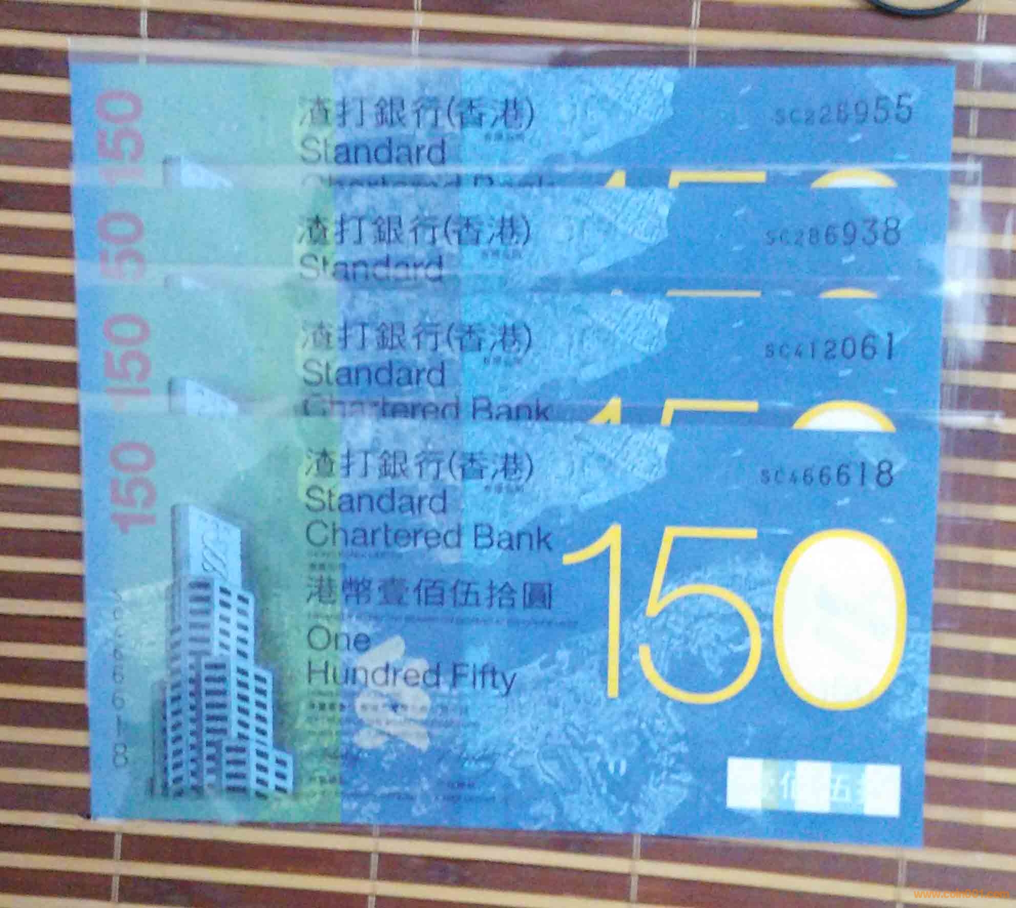 4)2009年,香港渣打150鈔:SC466618,SC412061,SC286938,SC225955,帶4的1450元/張張,不帶4的1600/張