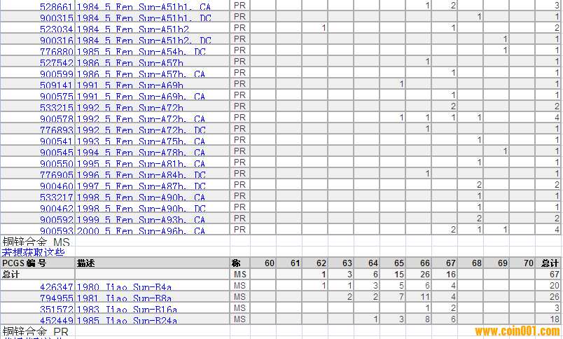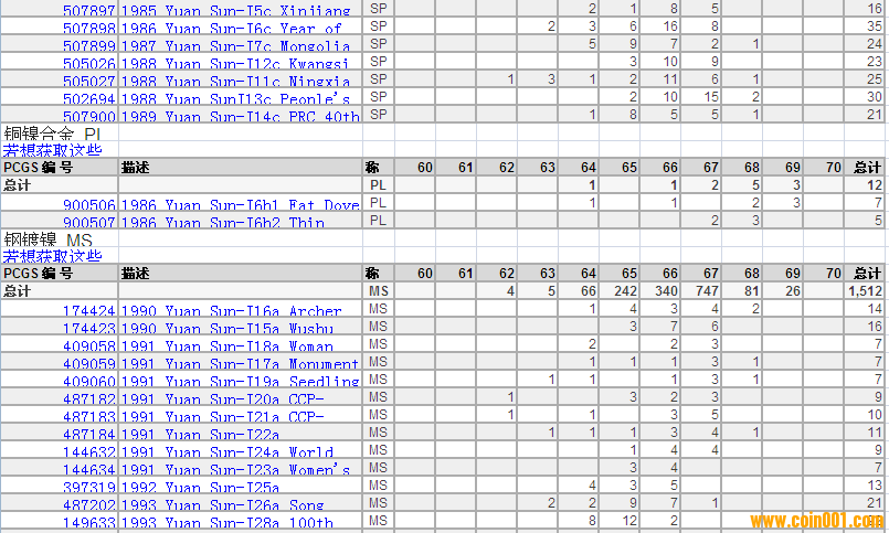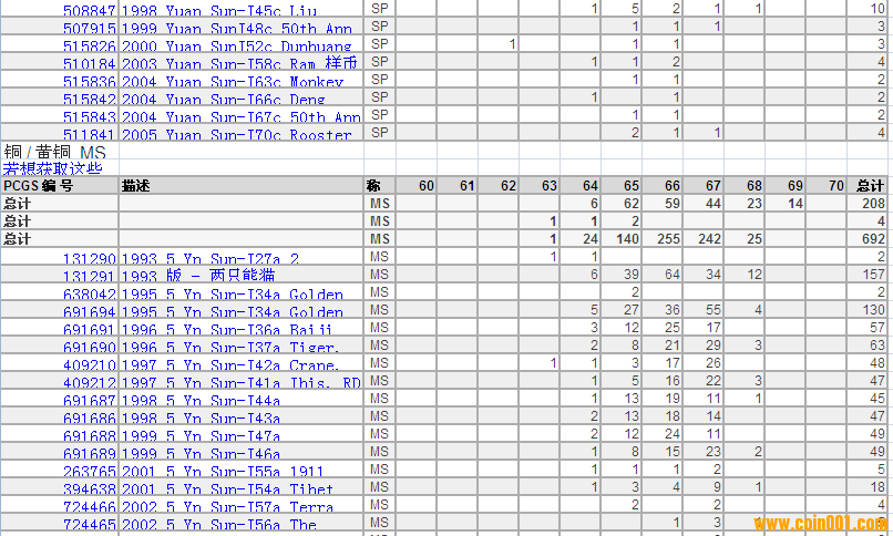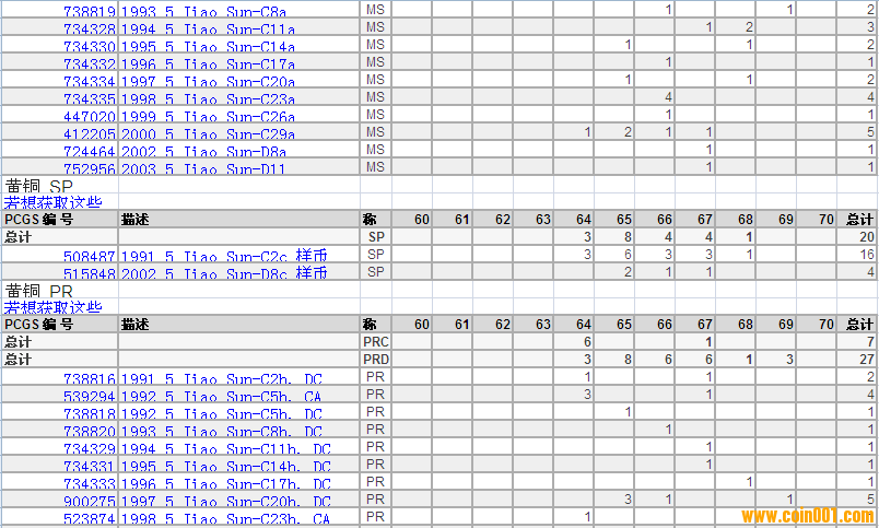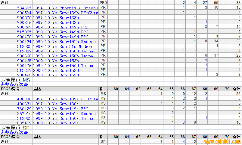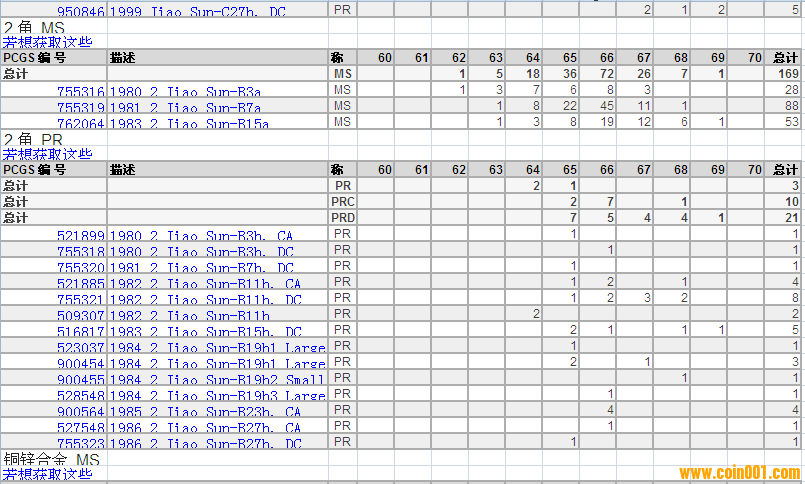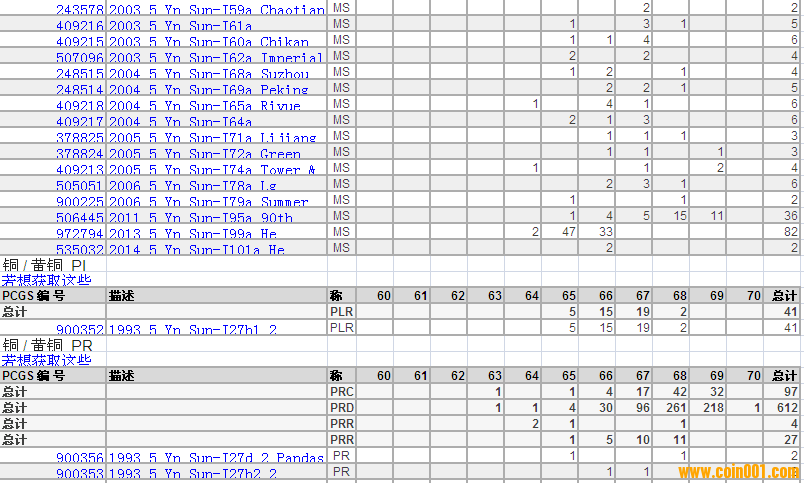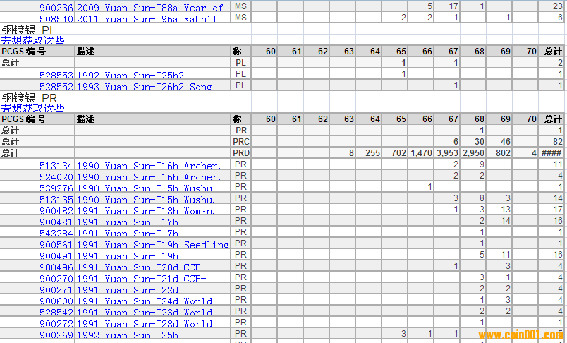 PCGS硬幣評級分?jǐn)?shù)分布 ..