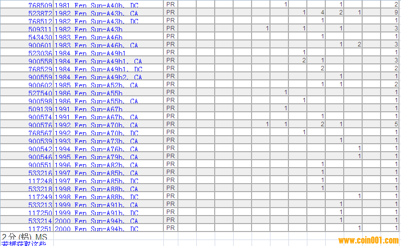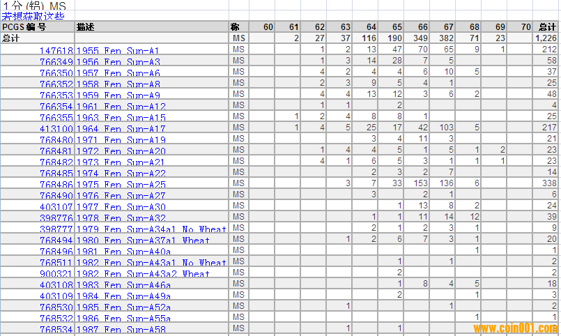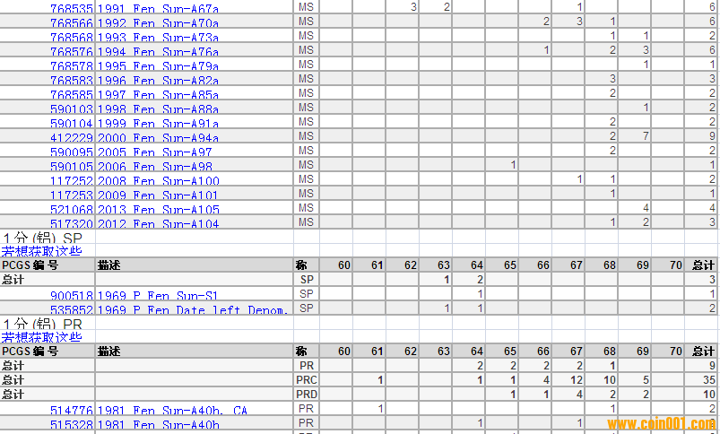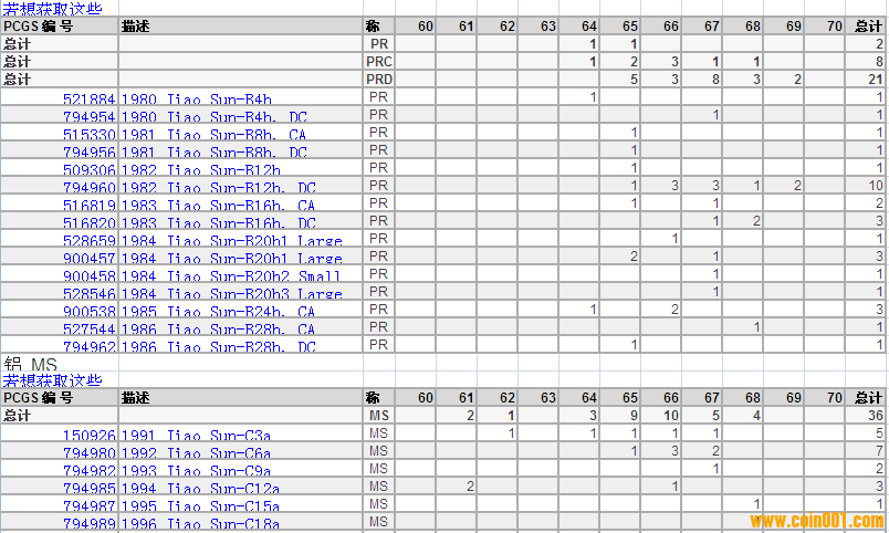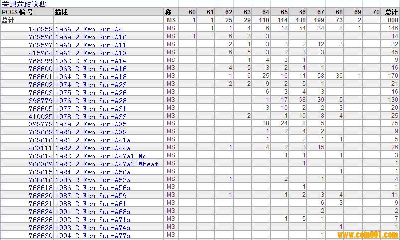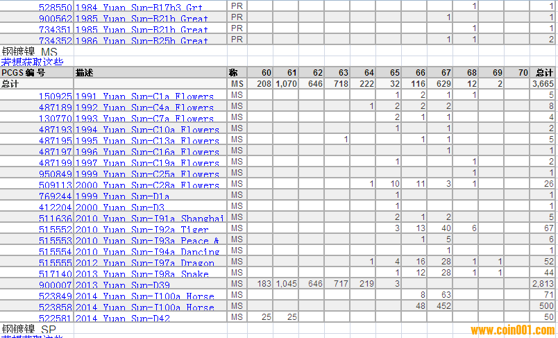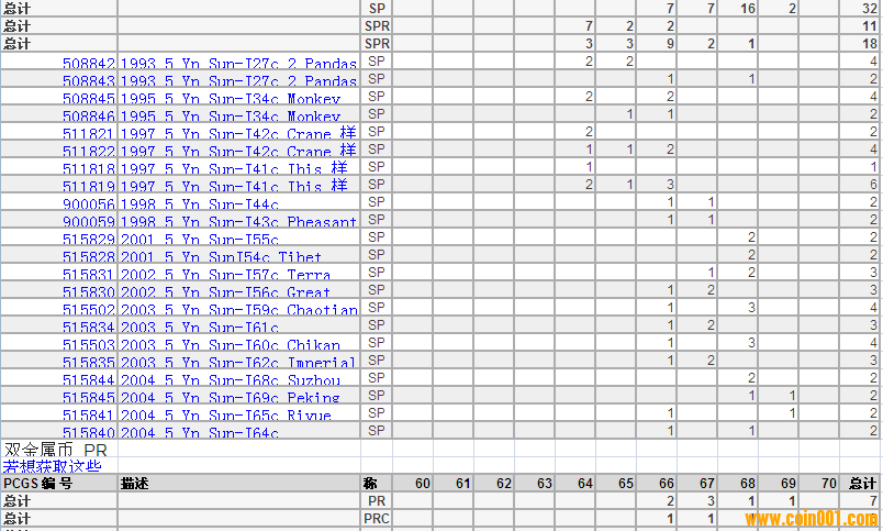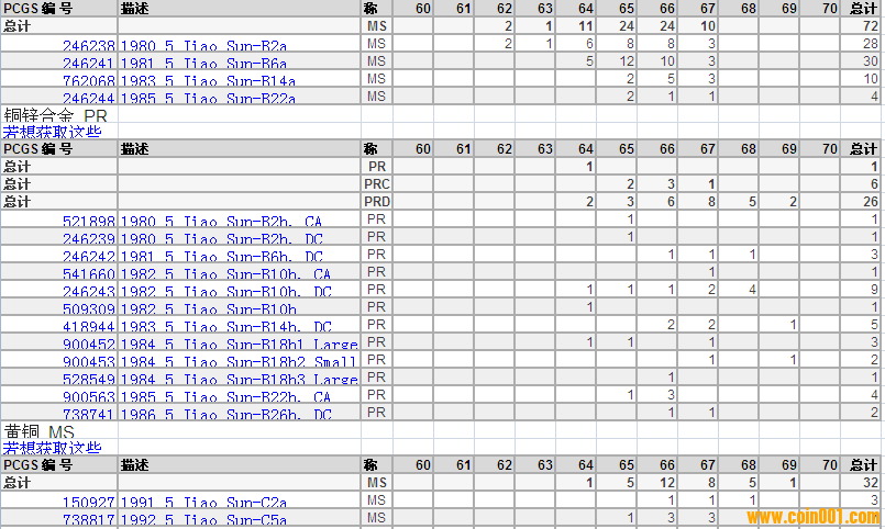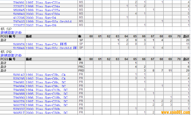 PCGS硬幣評級分?jǐn)?shù)分布 ..