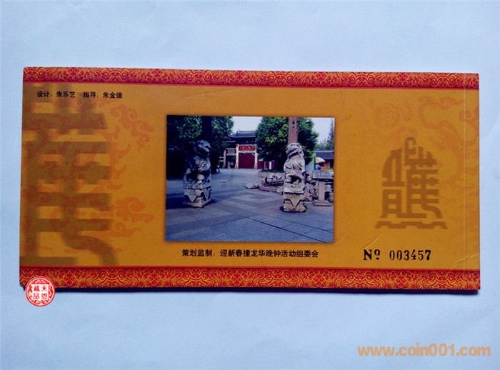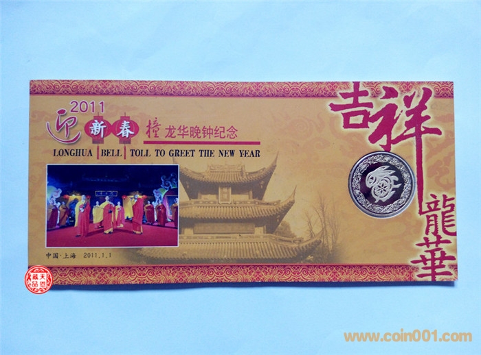 新添:老鳳祥:“2011兔年撞龍華晚鐘“33mm鍍金紀(jì)念章1個;售80元。