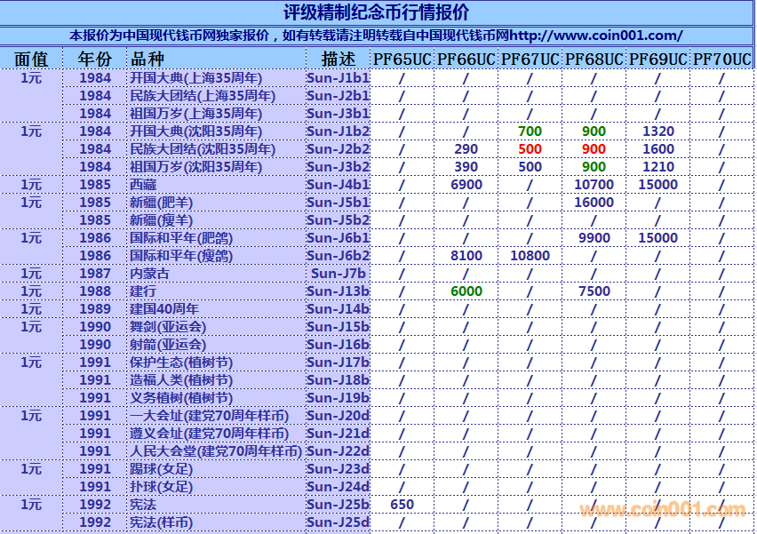 評級普通(精制)紀(jì)念幣交易