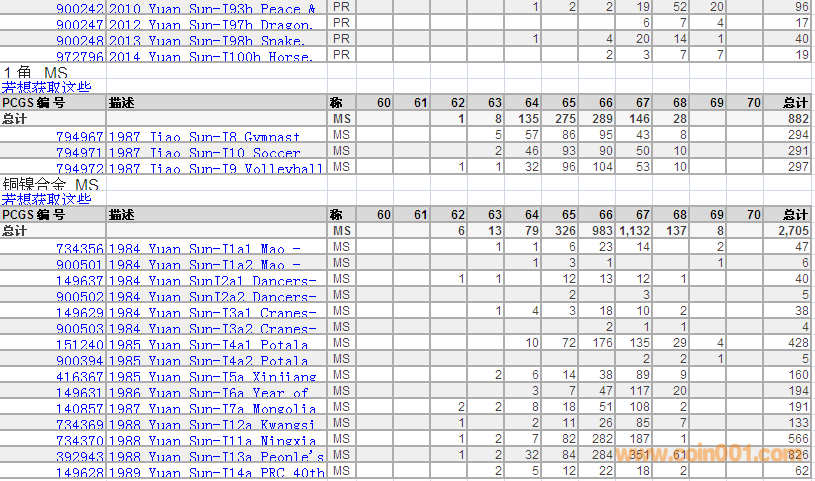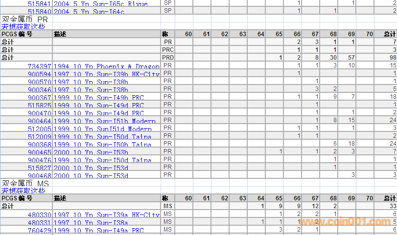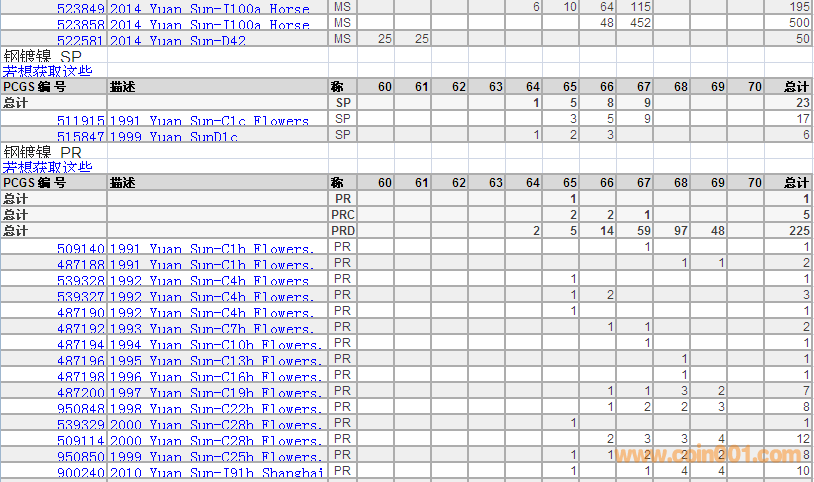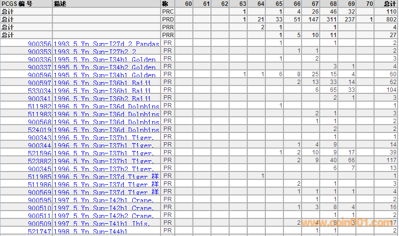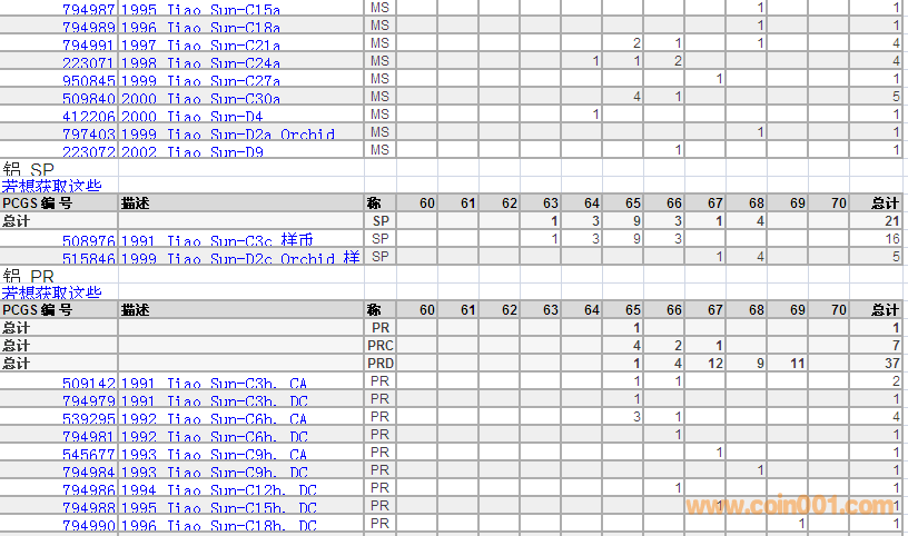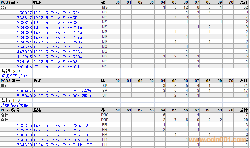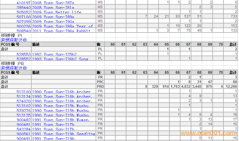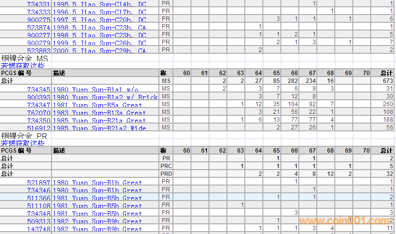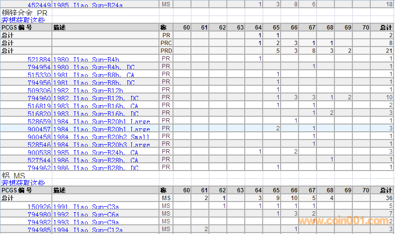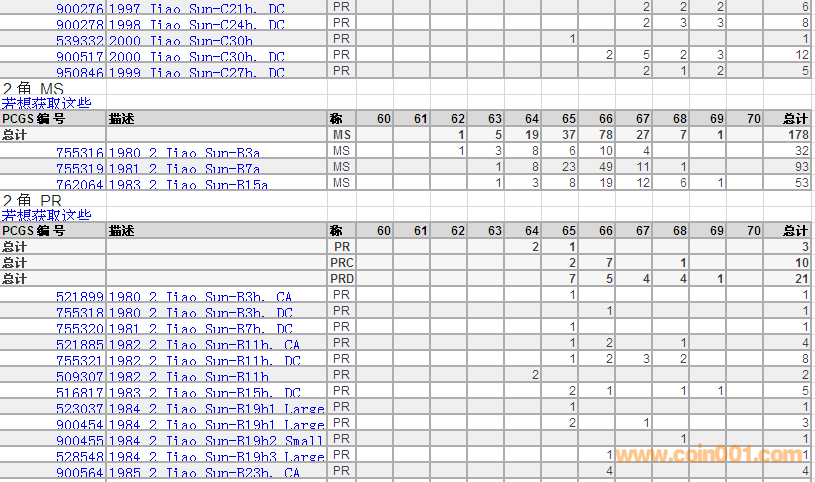 PCGS硬幣評級分?jǐn)?shù)分布 ..